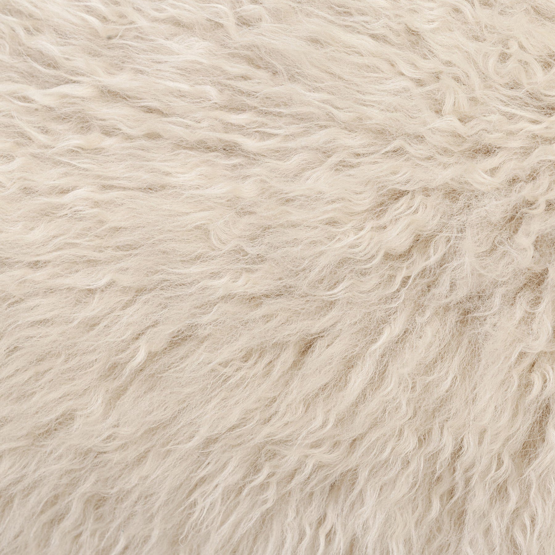 A textural take on a timeless silhouette. Hammered iron frames a squared seat and bolster back upholstered in off-white Mongolian fur.
