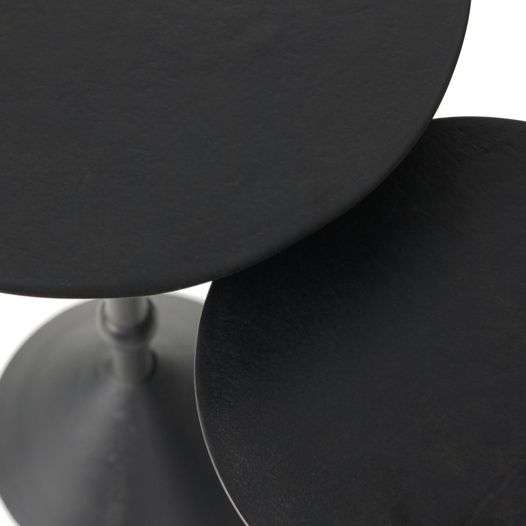 A pair of playful nesting end tables brings extra surfaces into play. Style anywhere — or move from room to room — to keep your drink or book within reach.