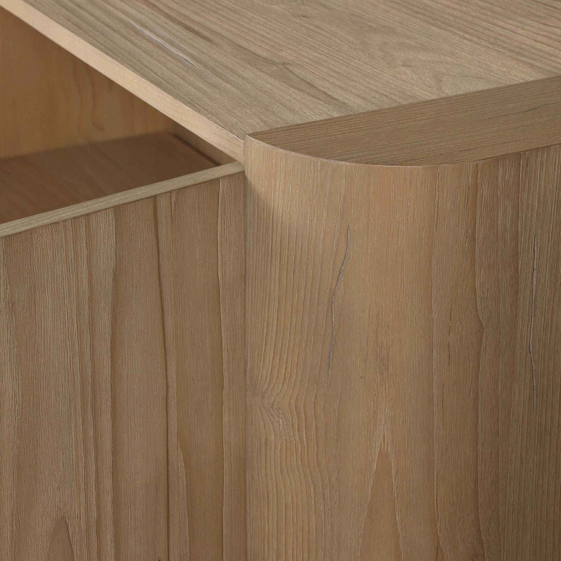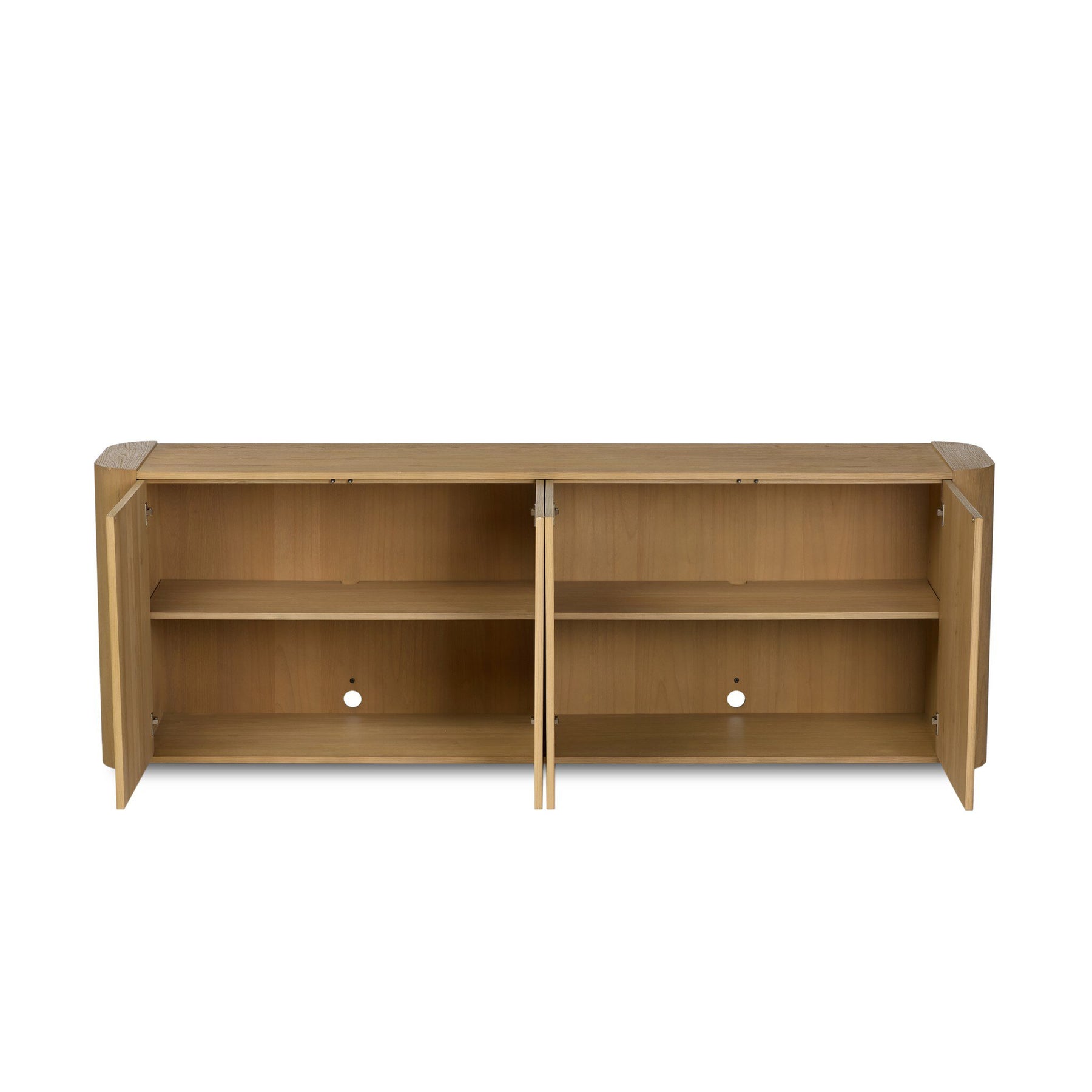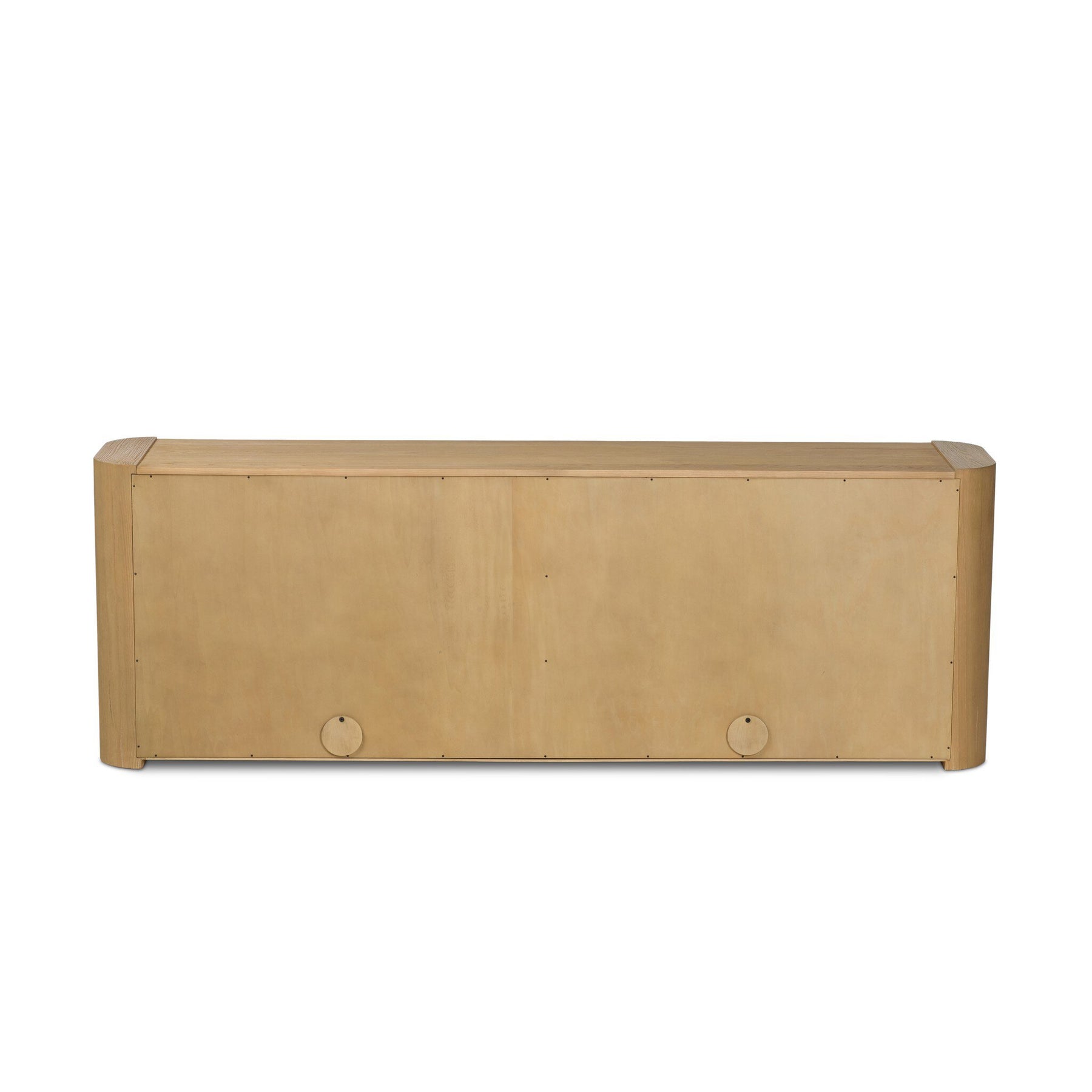 An attractive choice for the minimalist home, this sungkai sideboard is sandblasted to highlight the wood's natural grain. Rounded corners soften the finished look, and four push-latch doors maintain the understated style.