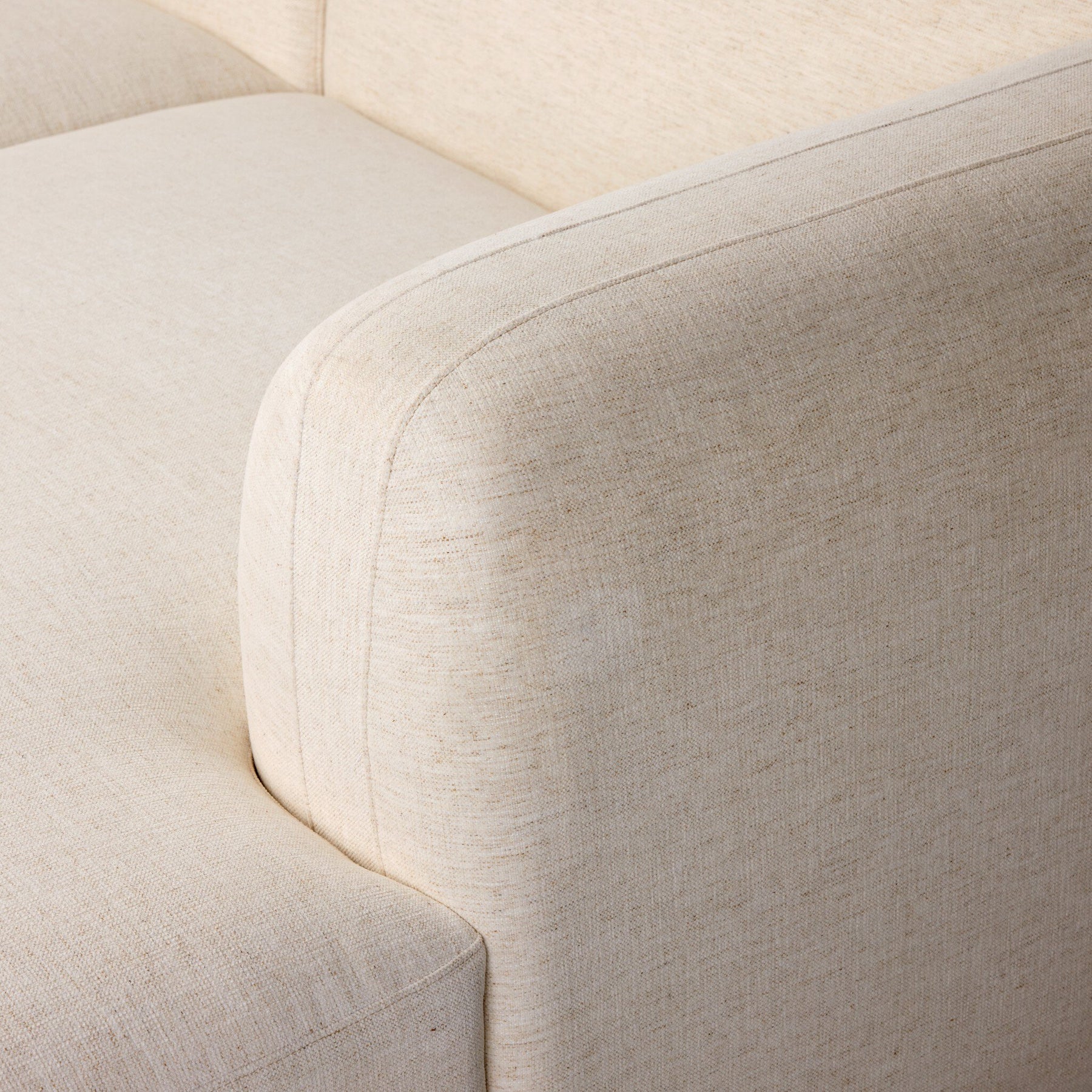 A stylish two-piece media lounger featuring soft performance fabric upholstery in Crypton Nomad Snow, supported by a sturdy black parawood frame. Designed for comfort and durability, this piece combines modern form with lasting function.