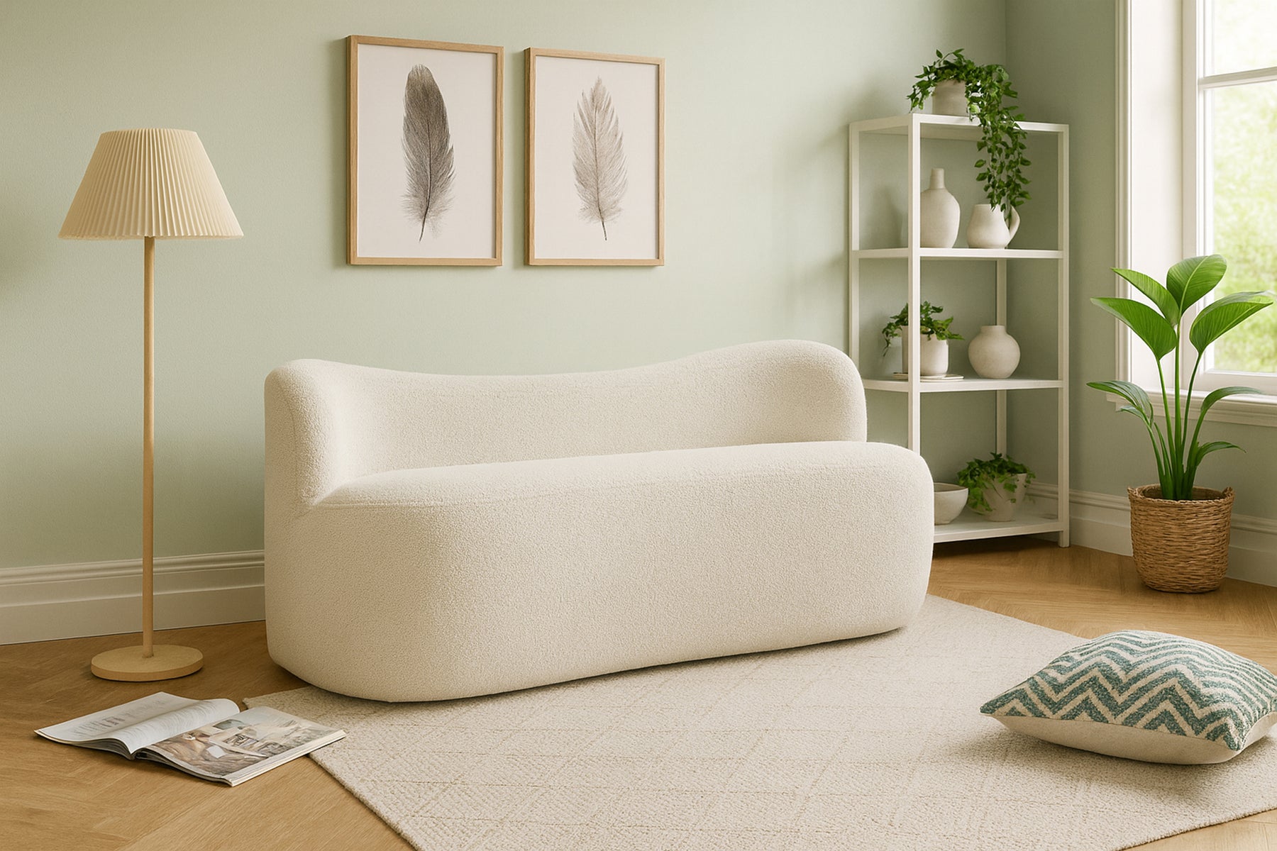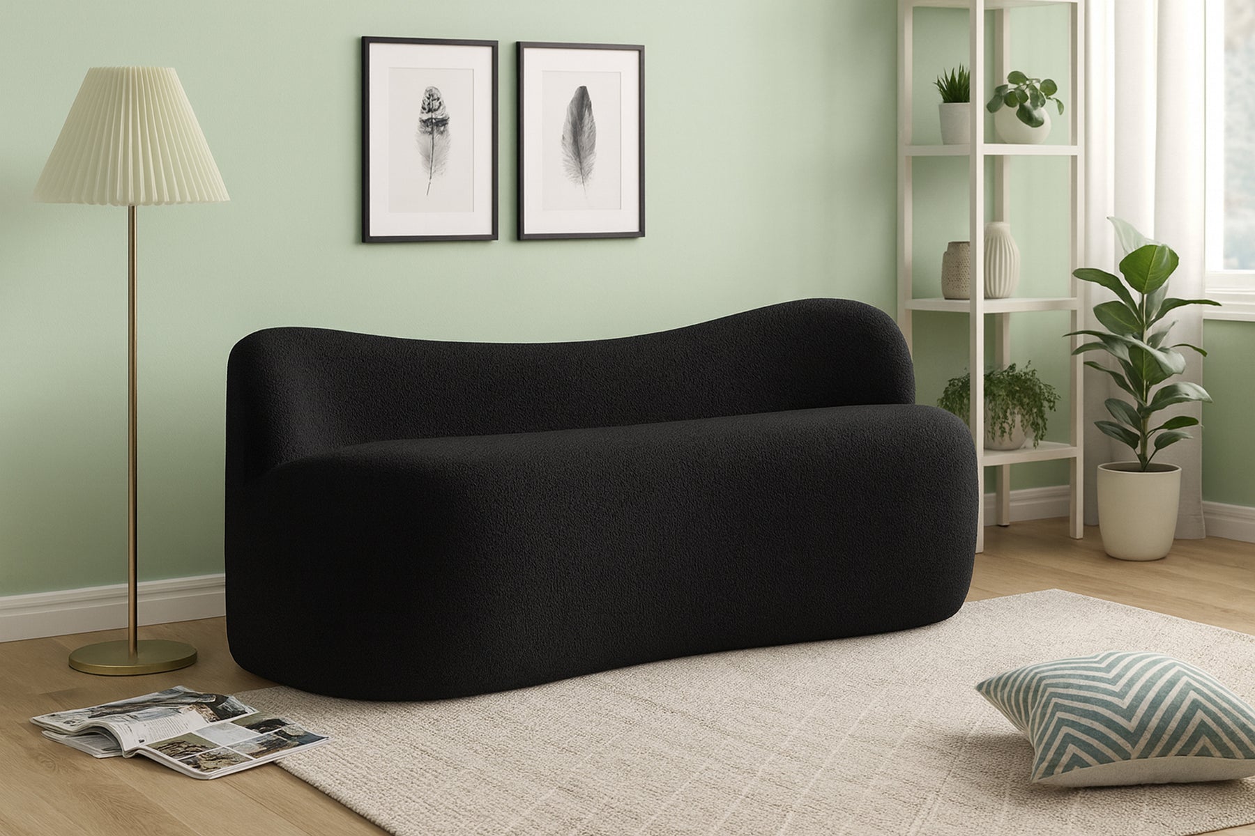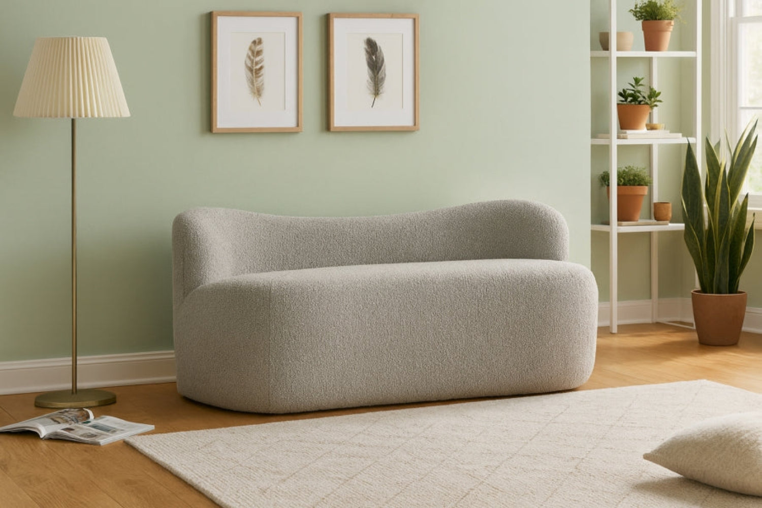 Add a contemporary touch to your home with this Sona bench. Its rich boucle fabric makes a stunning addition to any space. Its curved back provides support for your spine while its overall design creates a stunning accent piece for your modern home. With its ample footprint, this bench provides you with additional seating and is just the right size to fit any living space.