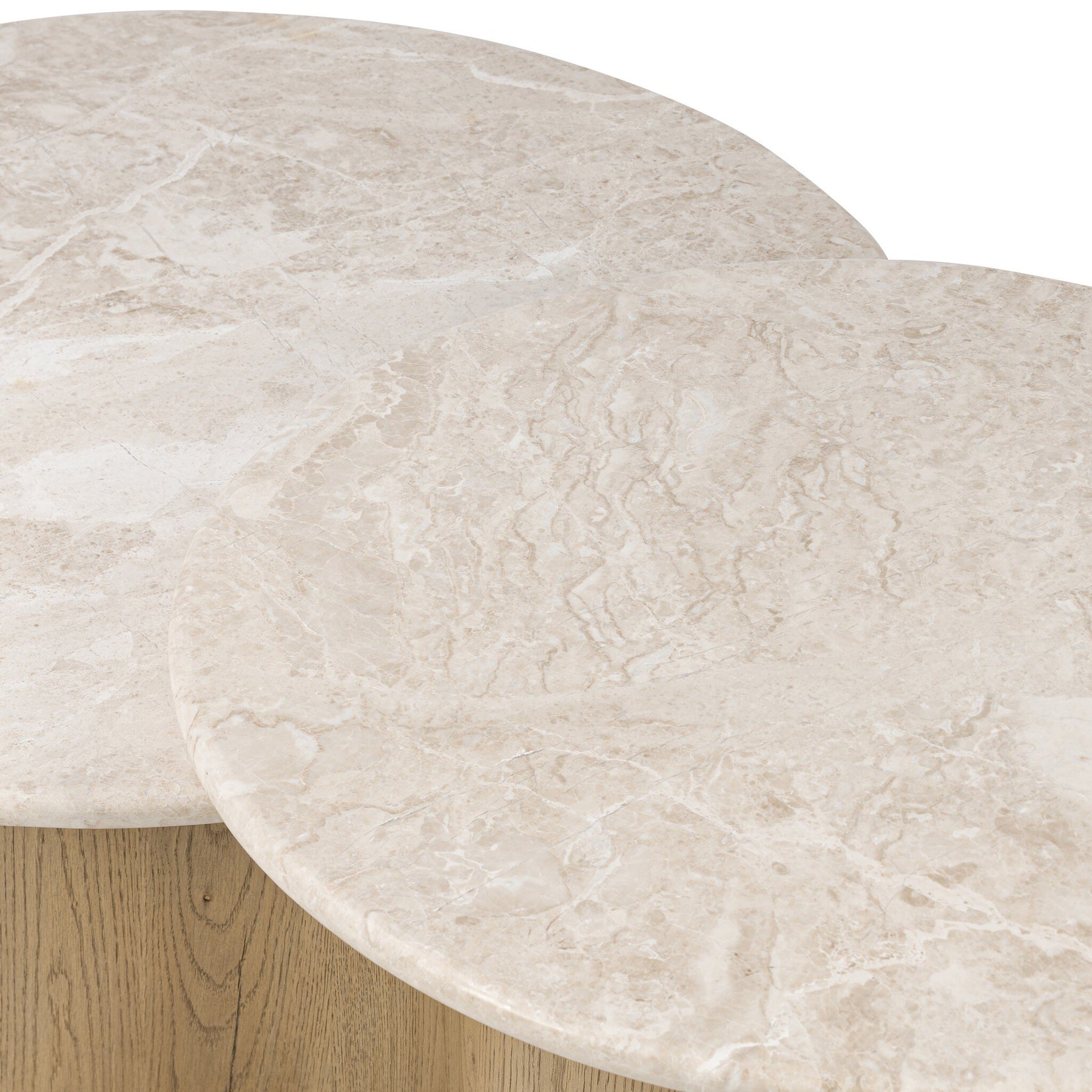 Work shape into your living space with a beautifully contoured coffee table of light wood and taupe marble, featuring two tiers of surface space ā perfect for entertaining.