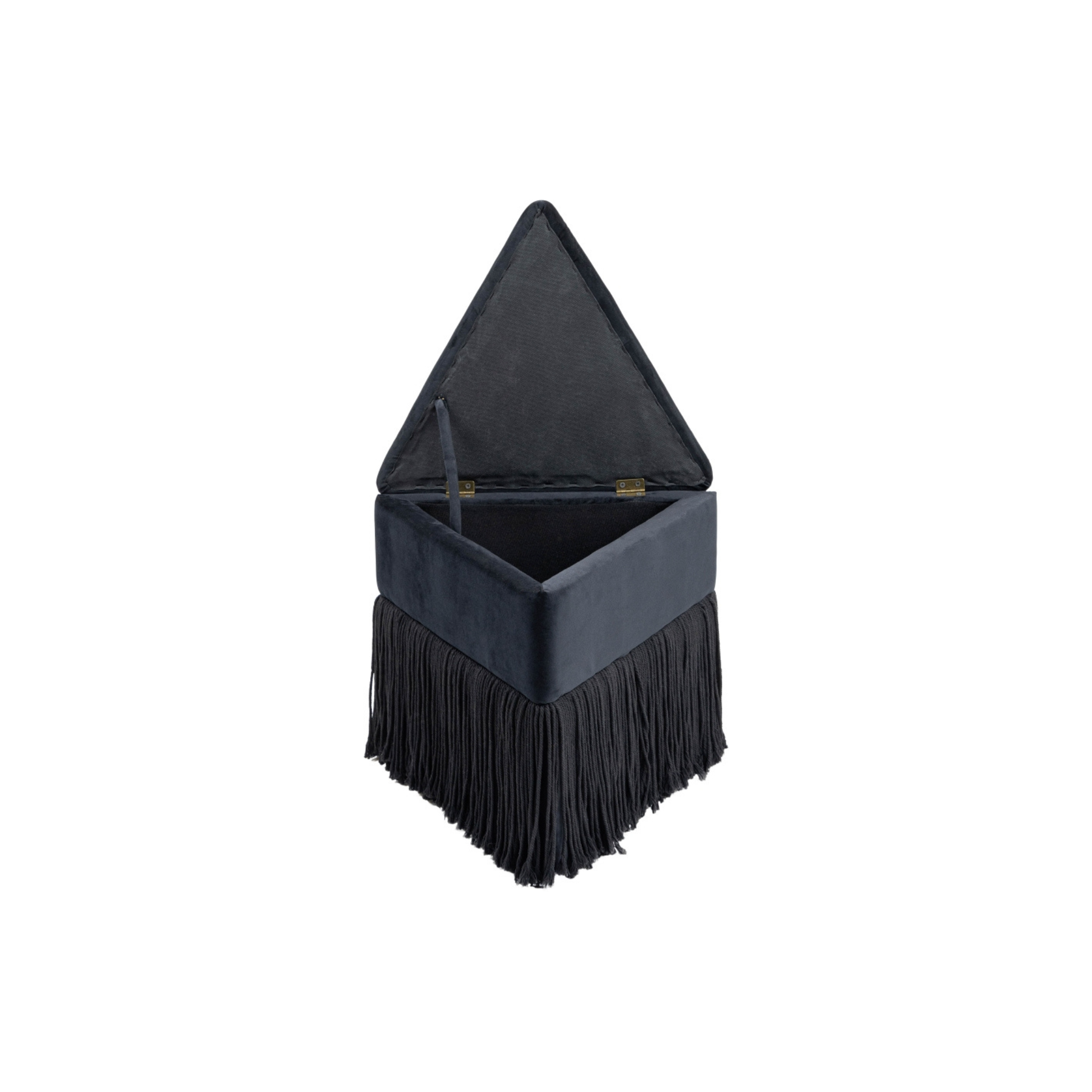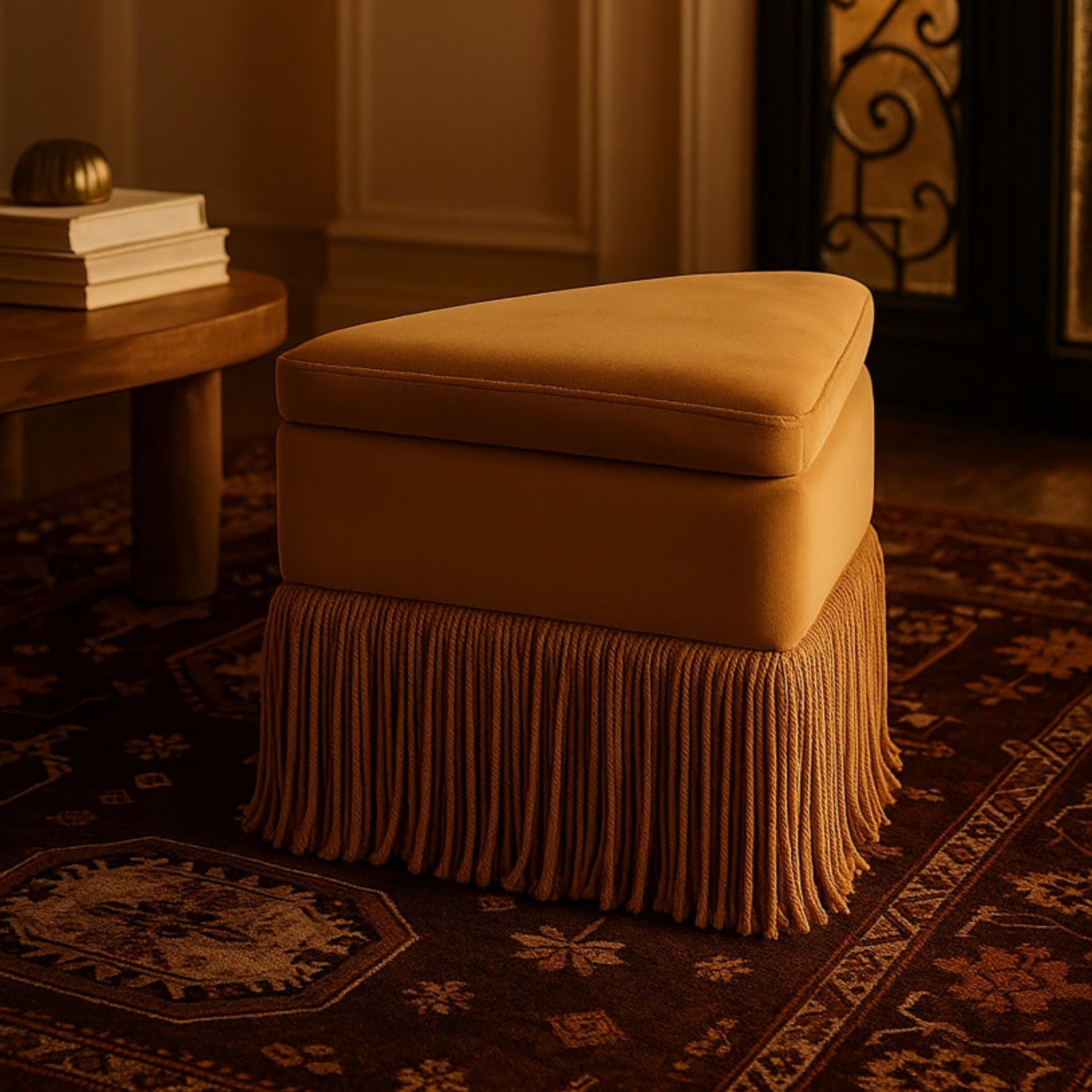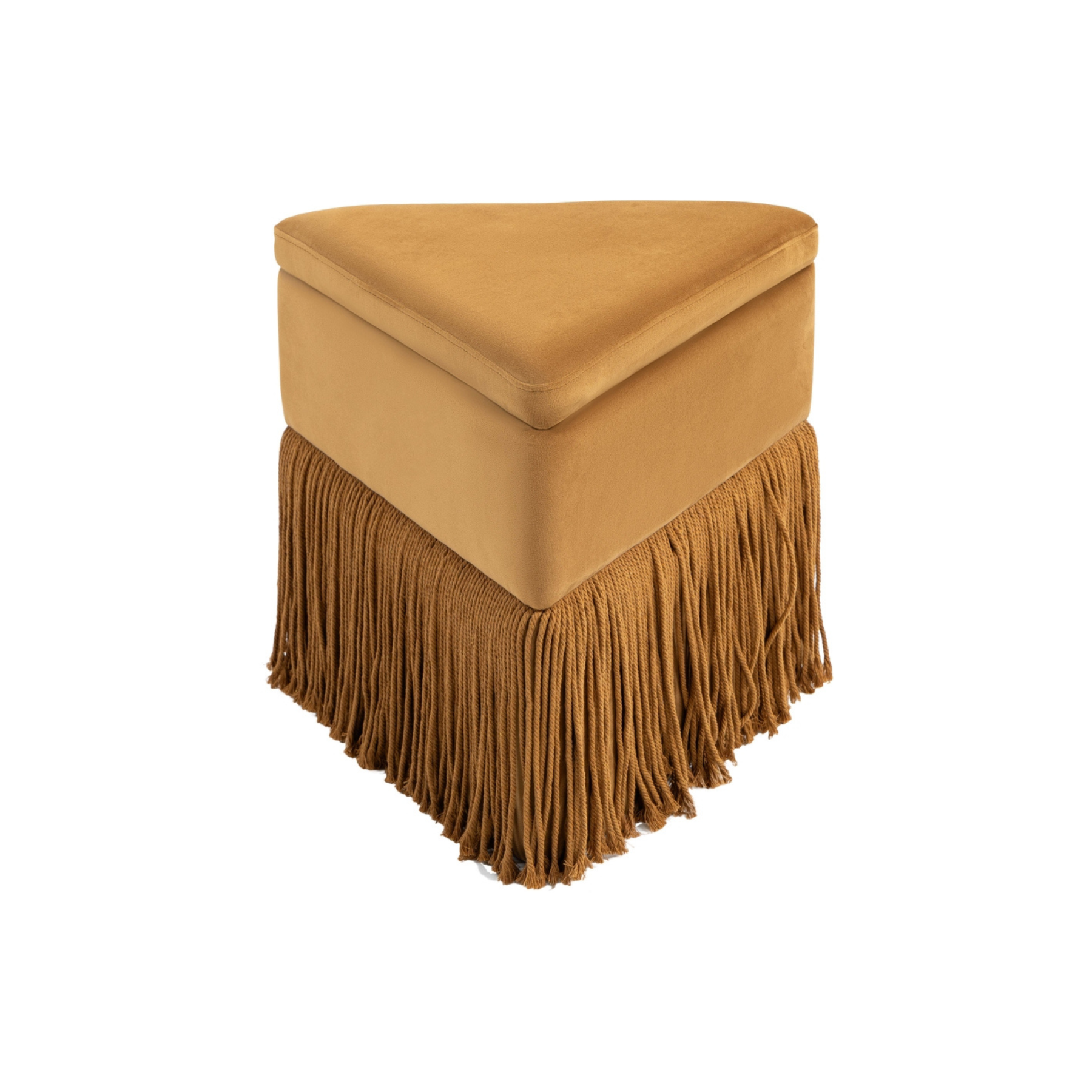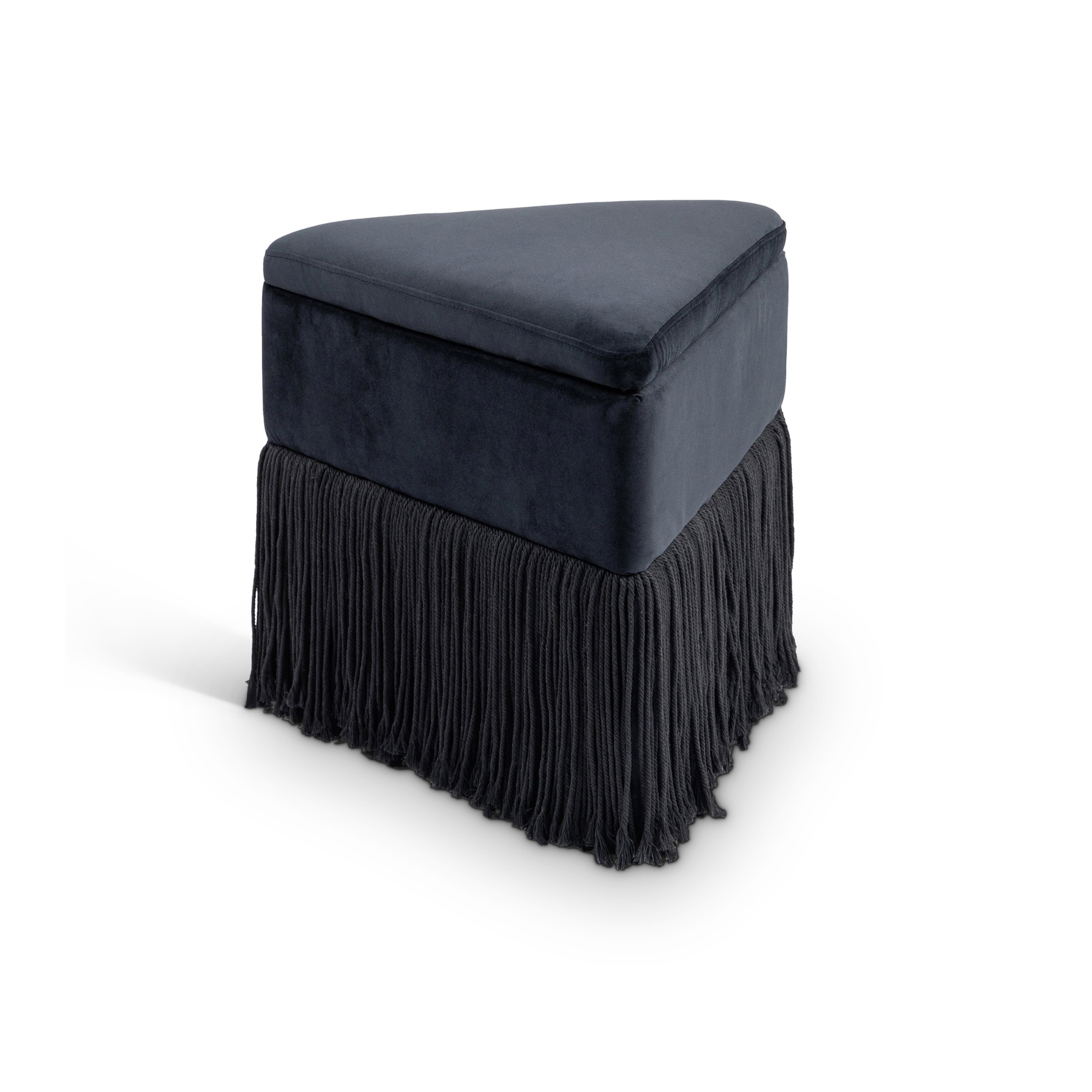 Add a bold touch of luxury to your space with the Tivora velvet ottoman, a captivating piece that combines opulence with quirky flair. Draped in sumptuous velvet, this triangular stool is all about making a statement. Its dramatic fringe skirt adds both texture and movement, offering a playful yet elegant vibe.