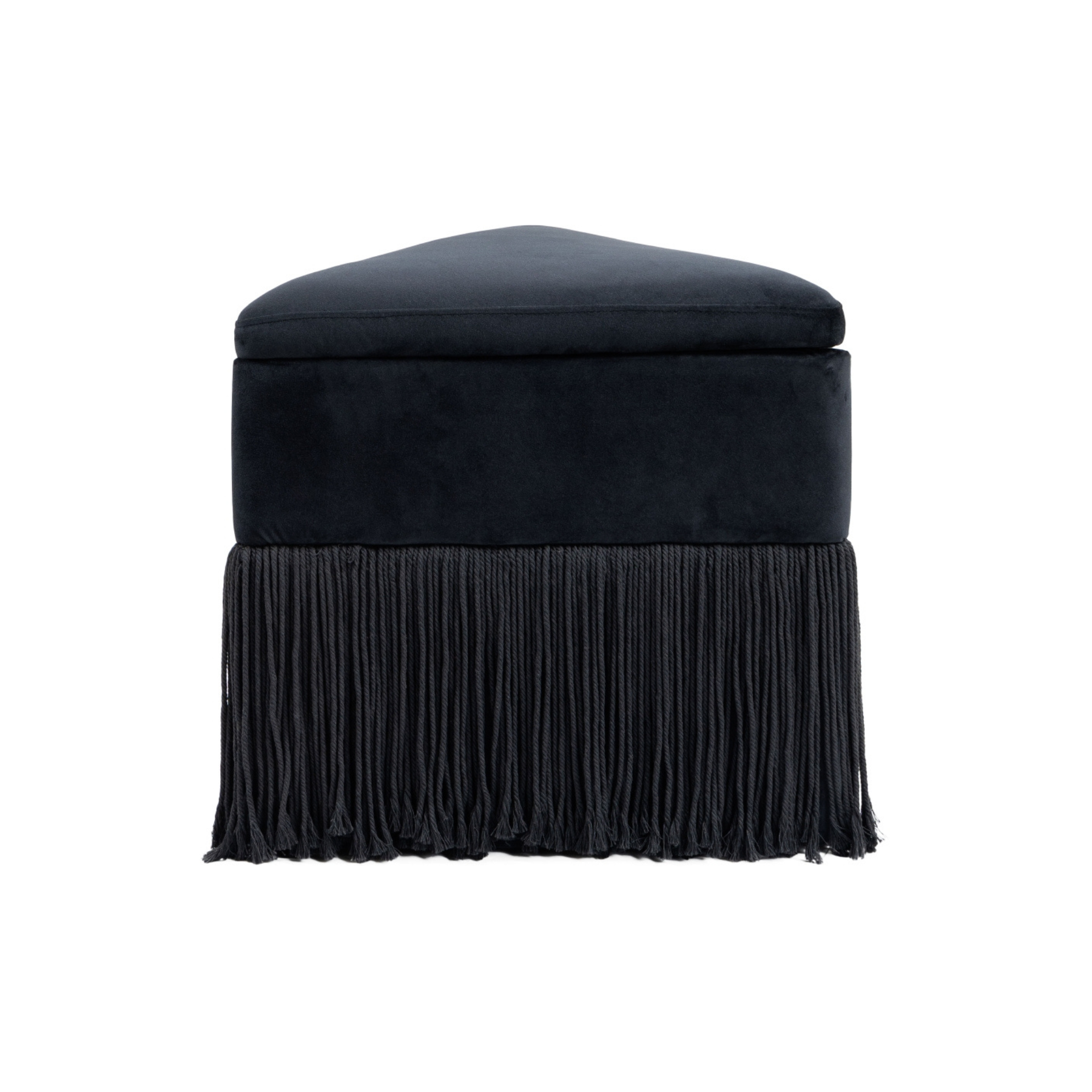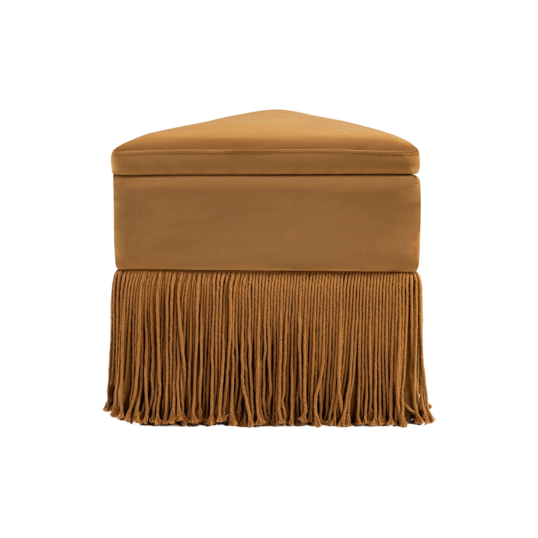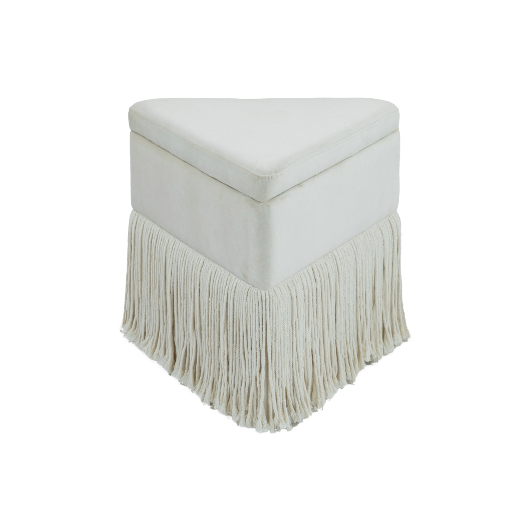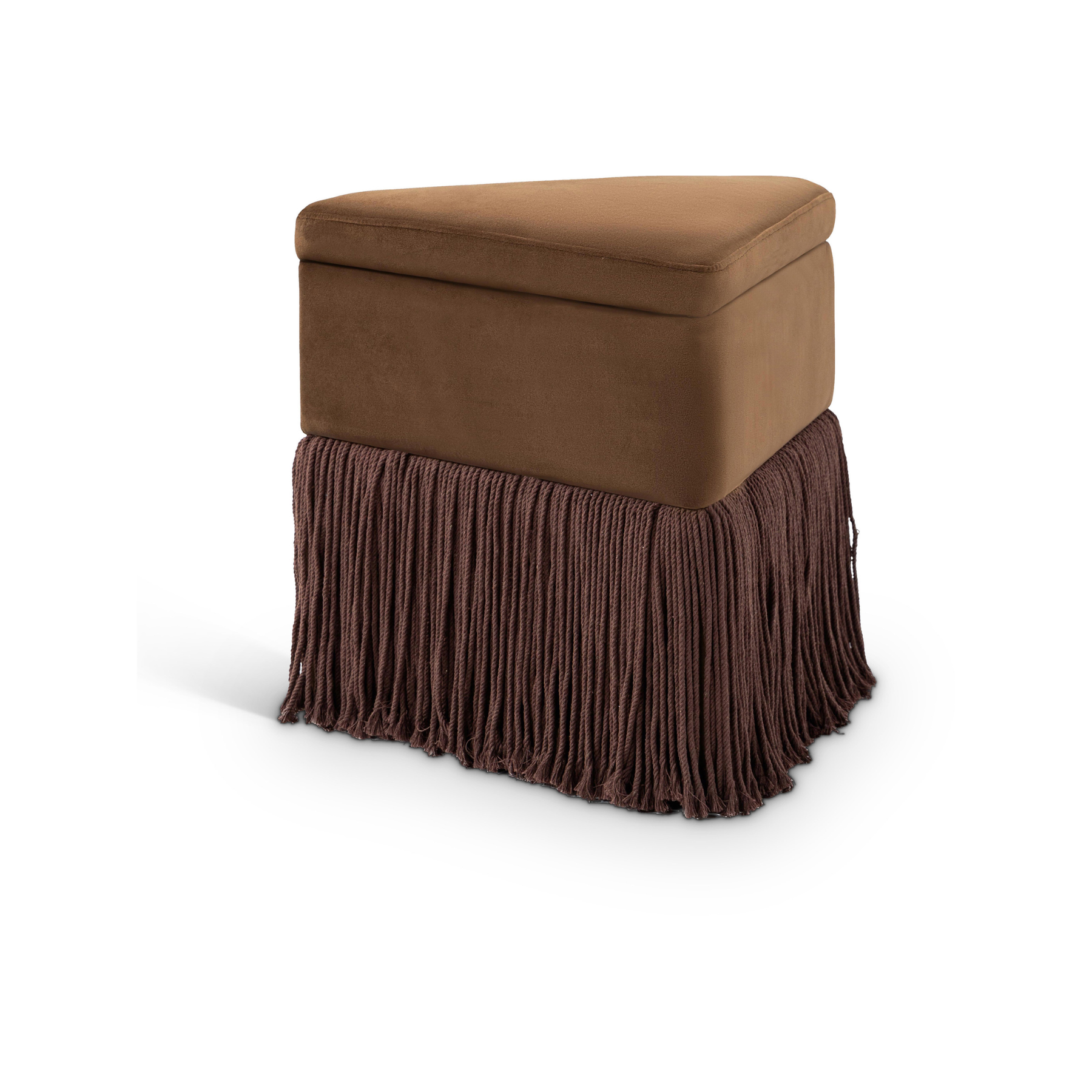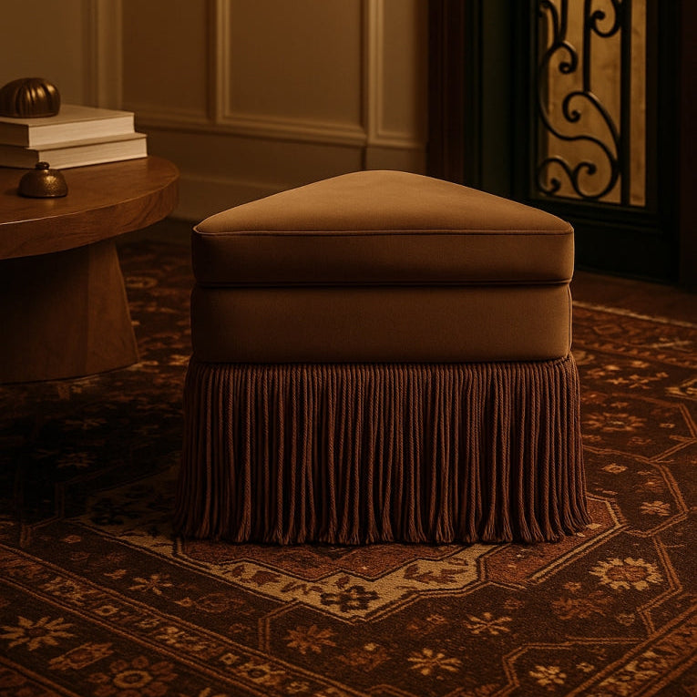 Add a bold touch of luxury to your space with the Tivora velvet ottoman, a captivating piece that combines opulence with quirky flair. Draped in sumptuous velvet, this triangular stool is all about making a statement. Its dramatic fringe skirt adds both texture and movement, offering a playful yet elegant vibe.
