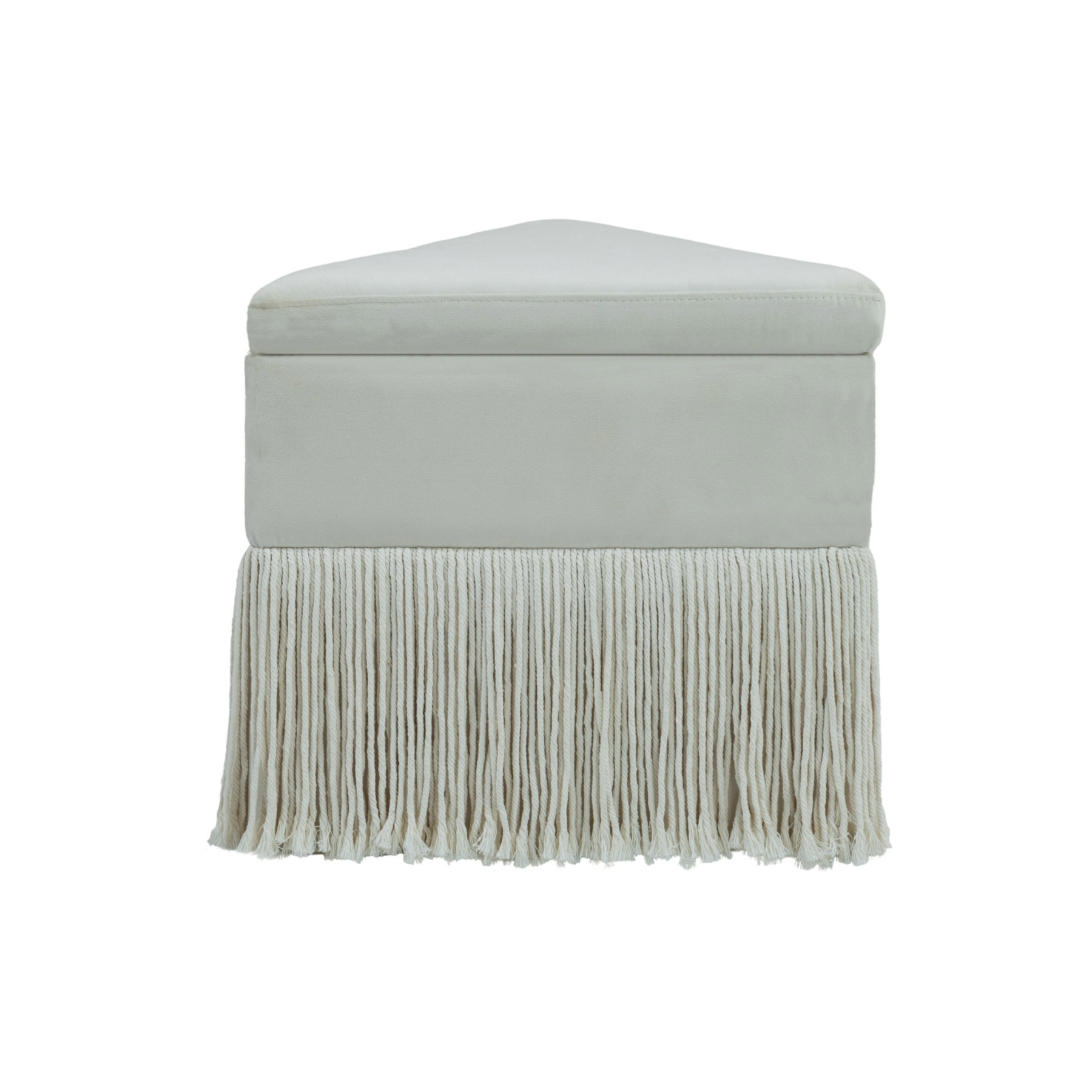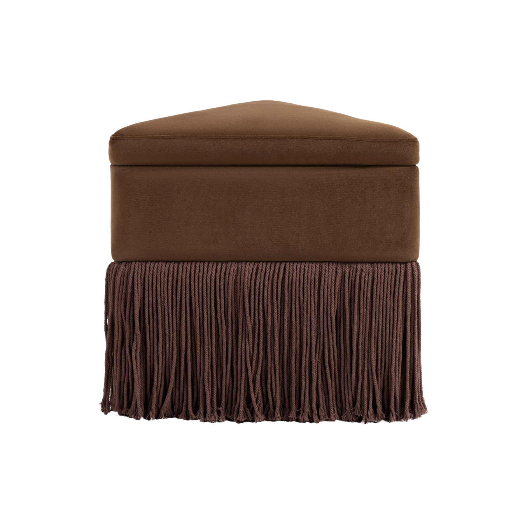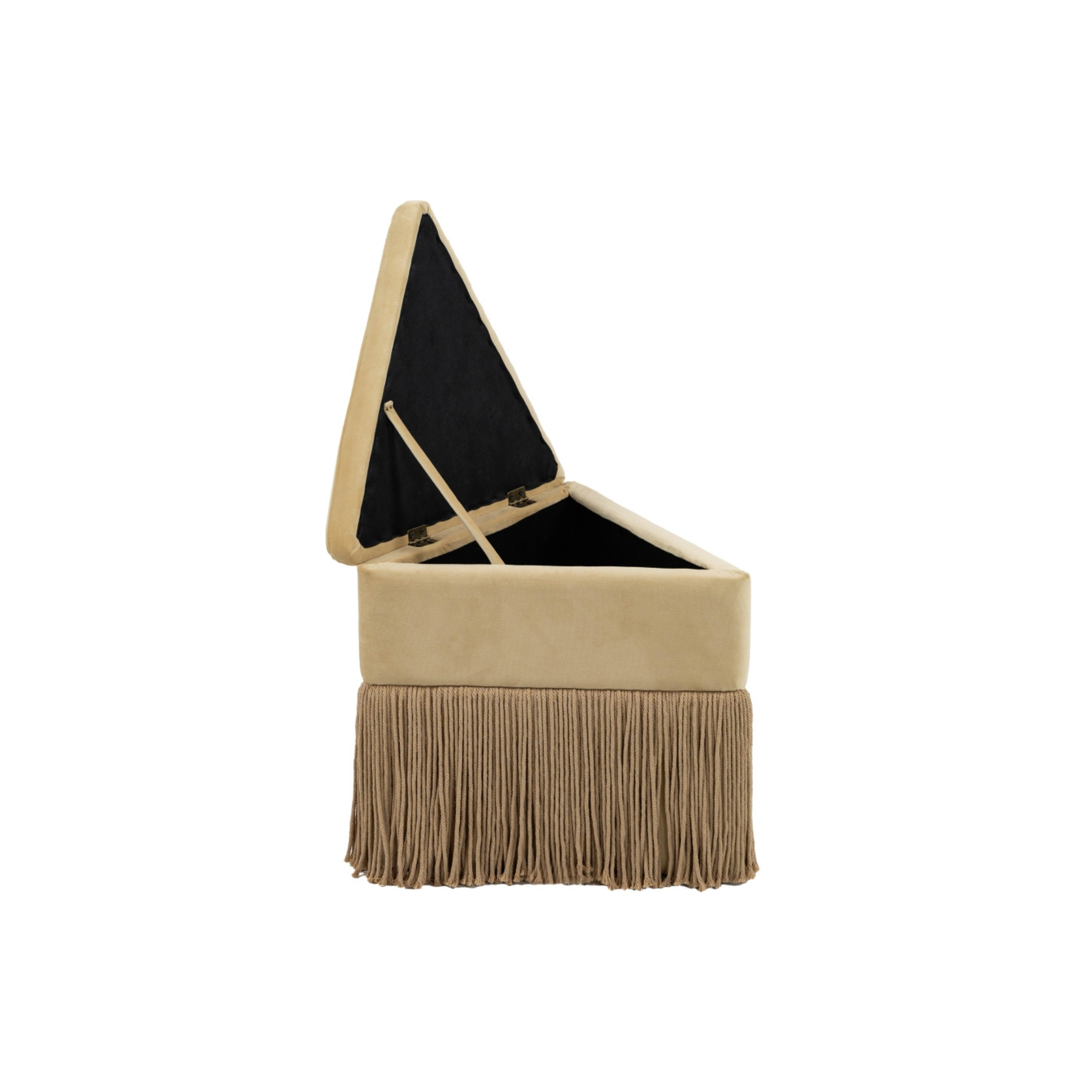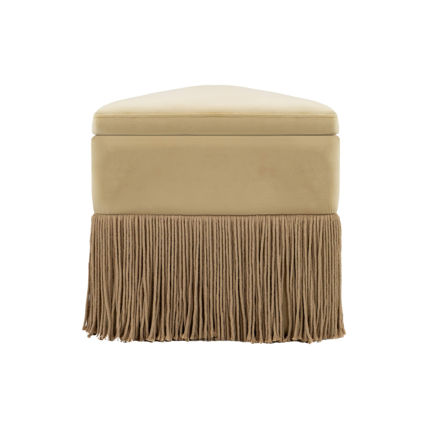Add a bold touch of luxury to your space with the Tivora velvet ottoman, a captivating piece that combines opulence with quirky flair. Draped in sumptuous velvet, this triangular stool is all about making a statement. Its dramatic fringe skirt adds both texture and movement, offering a playful yet elegant vibe.