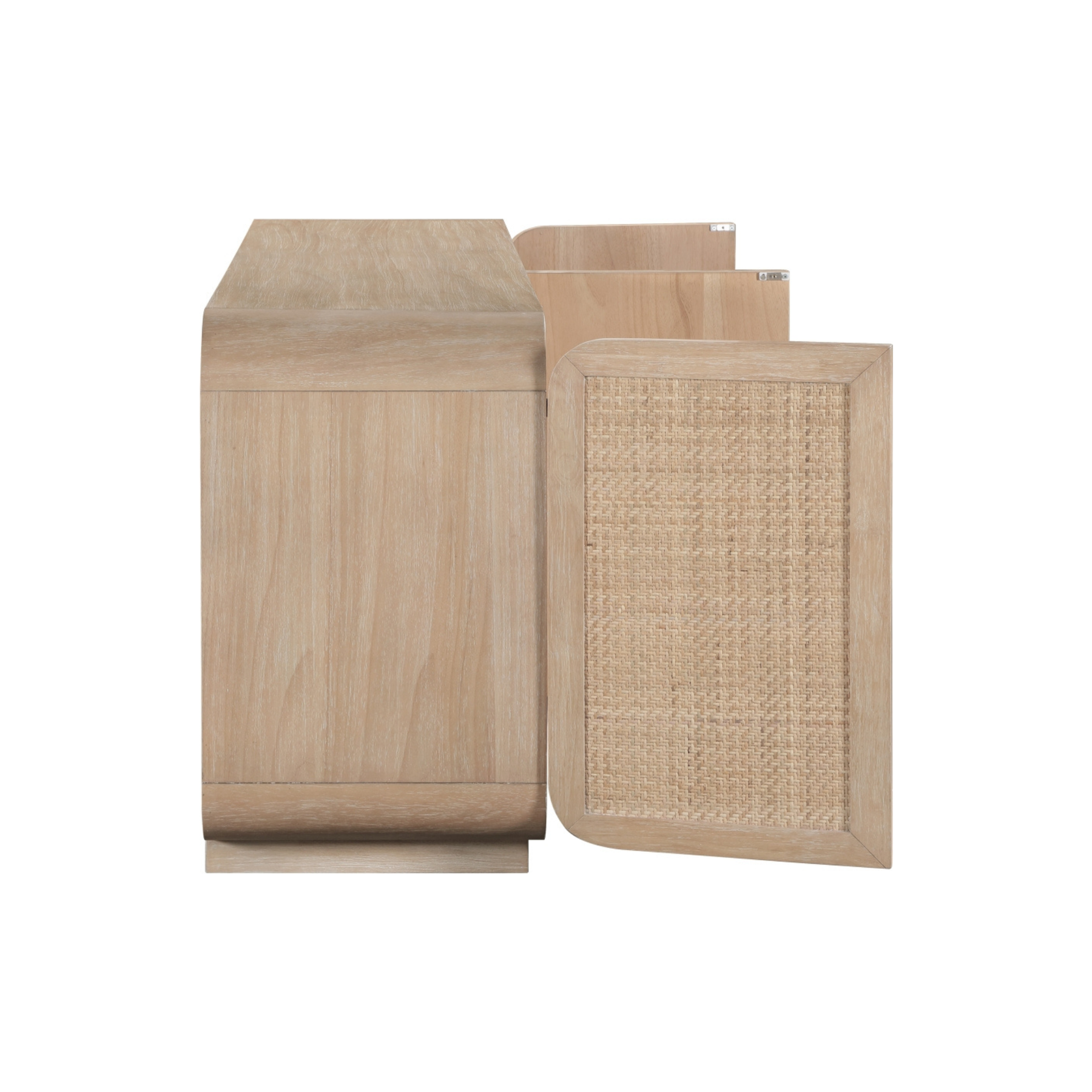 Natural or Brown textures take center stage with the Wynona natural or brown solid wood and cane sideboard. Framed in smooth, rounded durable wood and detailed with airy cane panels, this mid-century modern buffet balances form and function with effortless ease. Perfect for dining rooms, entryways, or living spaces needing a soft, organic touch.
