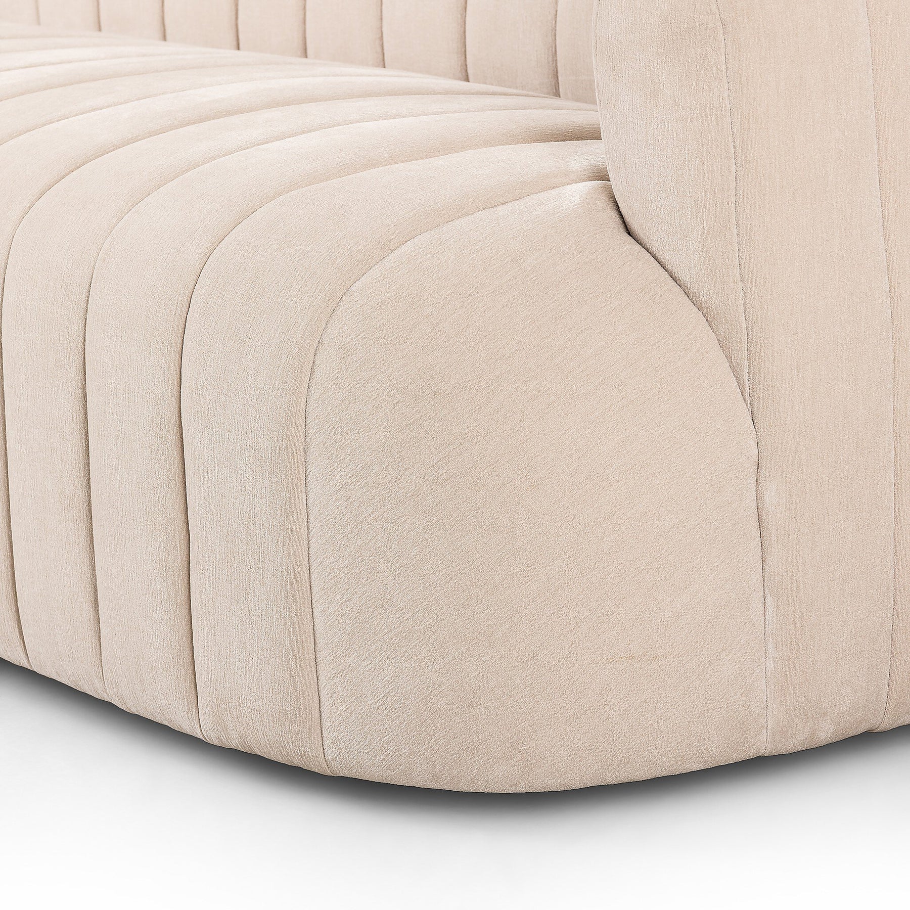 Meet the sofa that offers it all: curves, texture, durability, and sustainability. Detailed with wide, vertical channeling all around. Easy to clean and made from fully recyclable materials, FIQA fabrics are machine-washable, stain-resistant, water-repellent and antimicrobial.