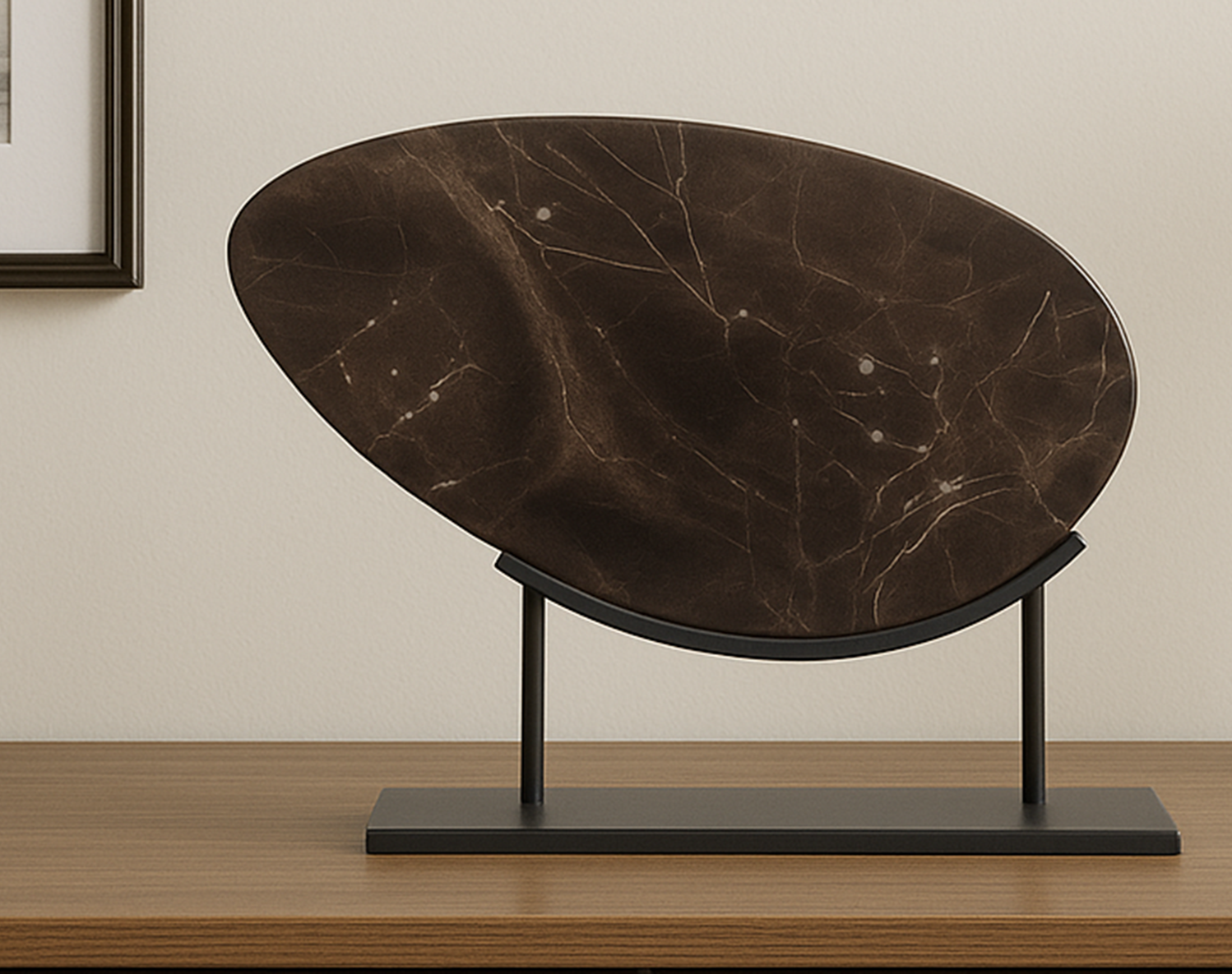 Nature-made. Statement-ready. Galen brings that found-object feel, with a polished twist. Made from Saint Laurent marble, each piece has its own natural veining, tone, and shape, so no two are exactly alike. The elongated, curved form feels modern and fluid, while the slender iron stand keeps it grounded. It’s a little bit organic, a little bit curated, and all about showing off the beauty of the stone. One of a kind, and styled to stand out.