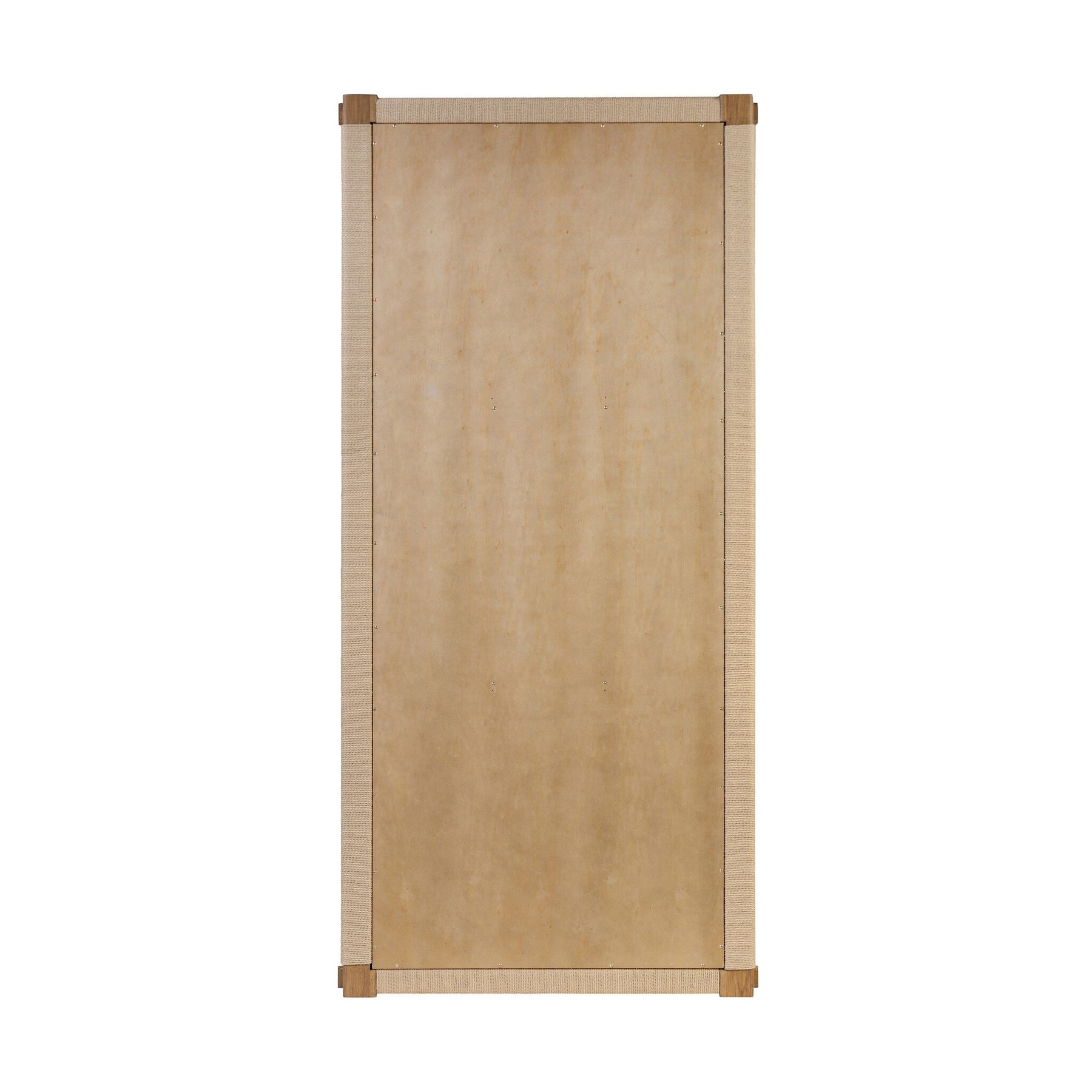 Paper cord wrapping and solid oak frame this floor mirror for a coastal-inspired, tonal look. Subtle mortise and tenon joinery at the top and base of the frame bring a small wood reveal at the corners.
