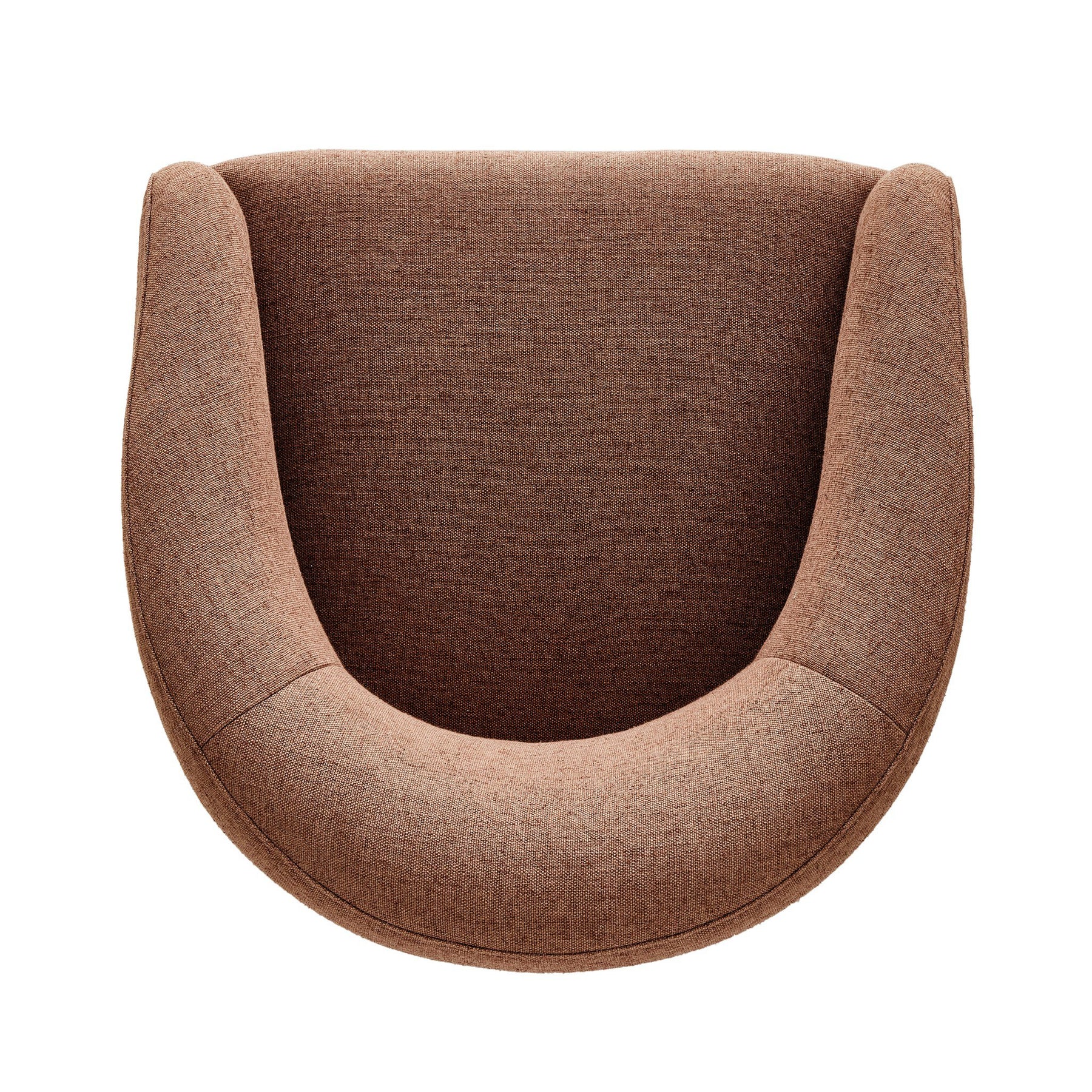 Fully upholstered in a unique rust hue, a barrel-style back creates a comfortable, cocoon-like sit. Slight scale perfect for smaller dining spaces.