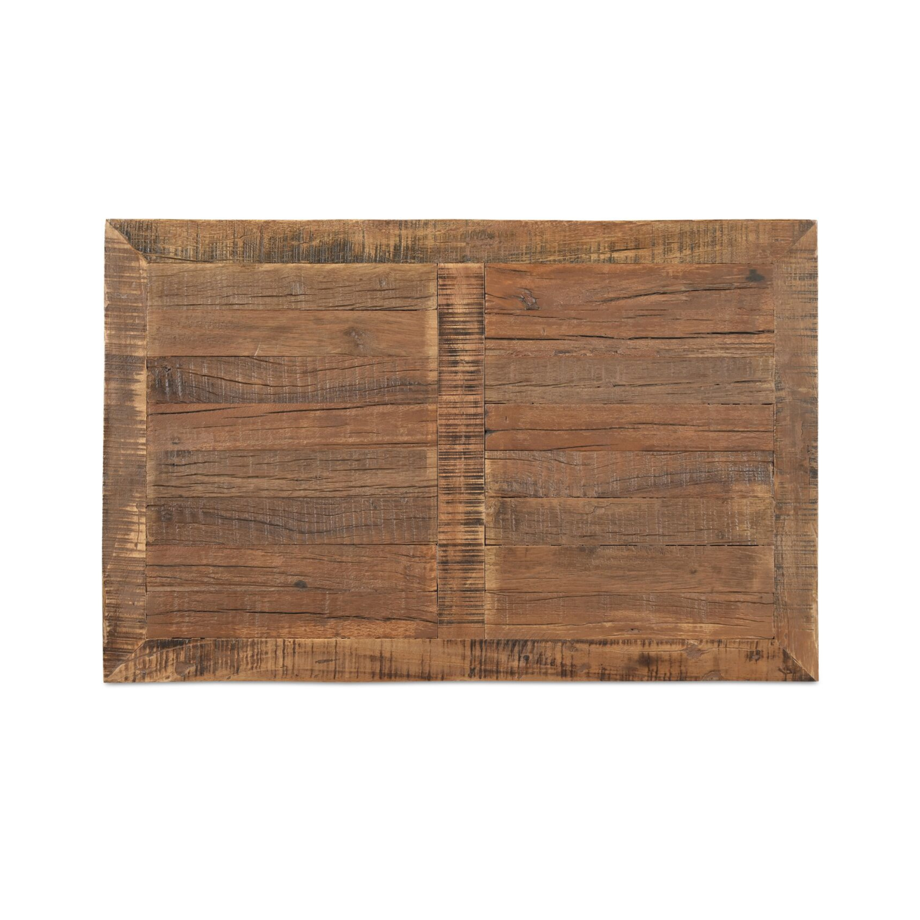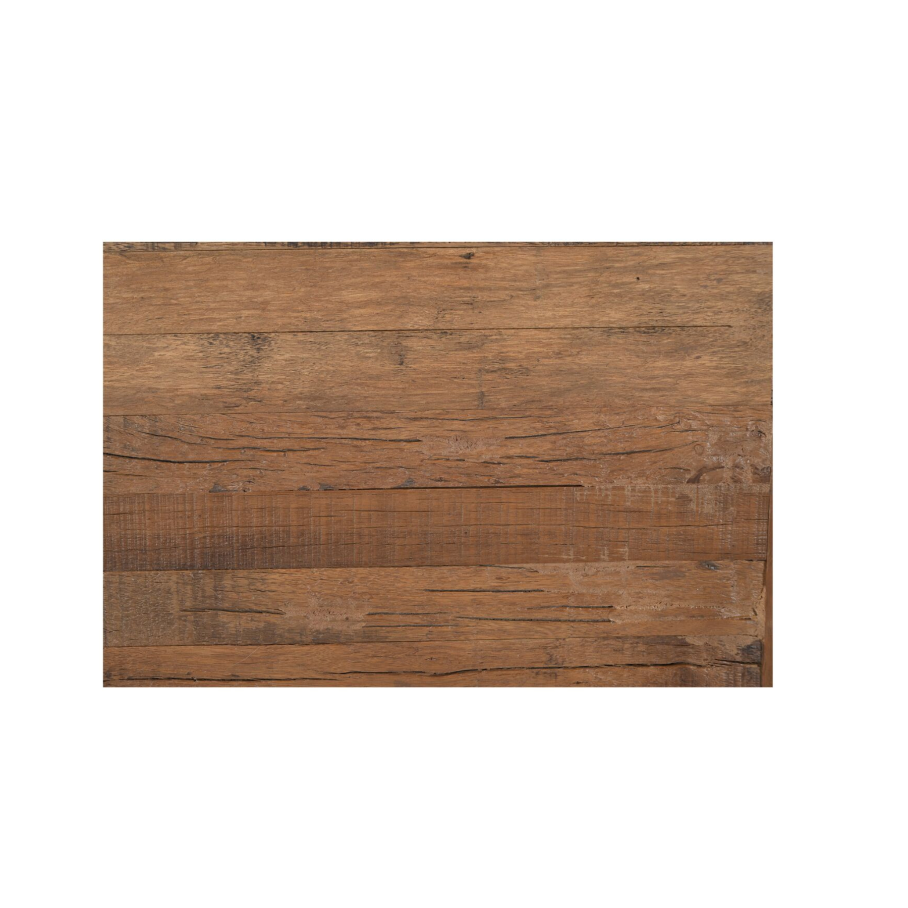 History in every panel. August brings a heritage character to a classic silhouette. Crafted from reclaimed wood once used in India’s railway system, each strip has been naturally seasoned over time—giving the piece its rich tonal variation and weathered charm. Vertical and horizontal panels create a quiet rhythm across the front, while subtle overhangs on the top and base nod to tradition. Rustic in material, refined in shape—this one tells a story without saying a word.