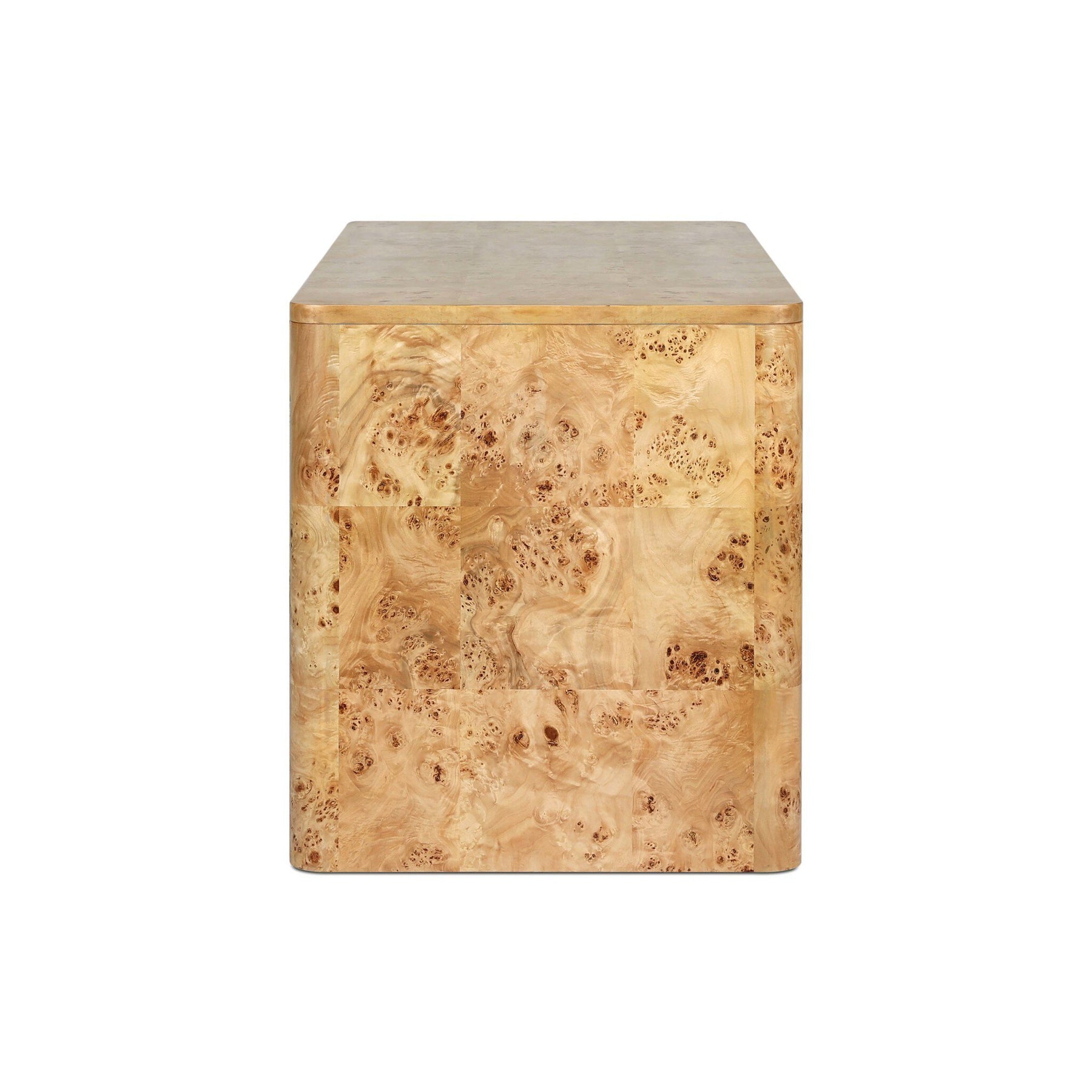 A simple, understated shape keeps this piece's spotlight on its unique swirling burl pattern. All-natural poplar is beautifully finished to amplify the organic shading with all its highs and lows. Each desk is completely unique with variations in color and pattern inherent to the wood.