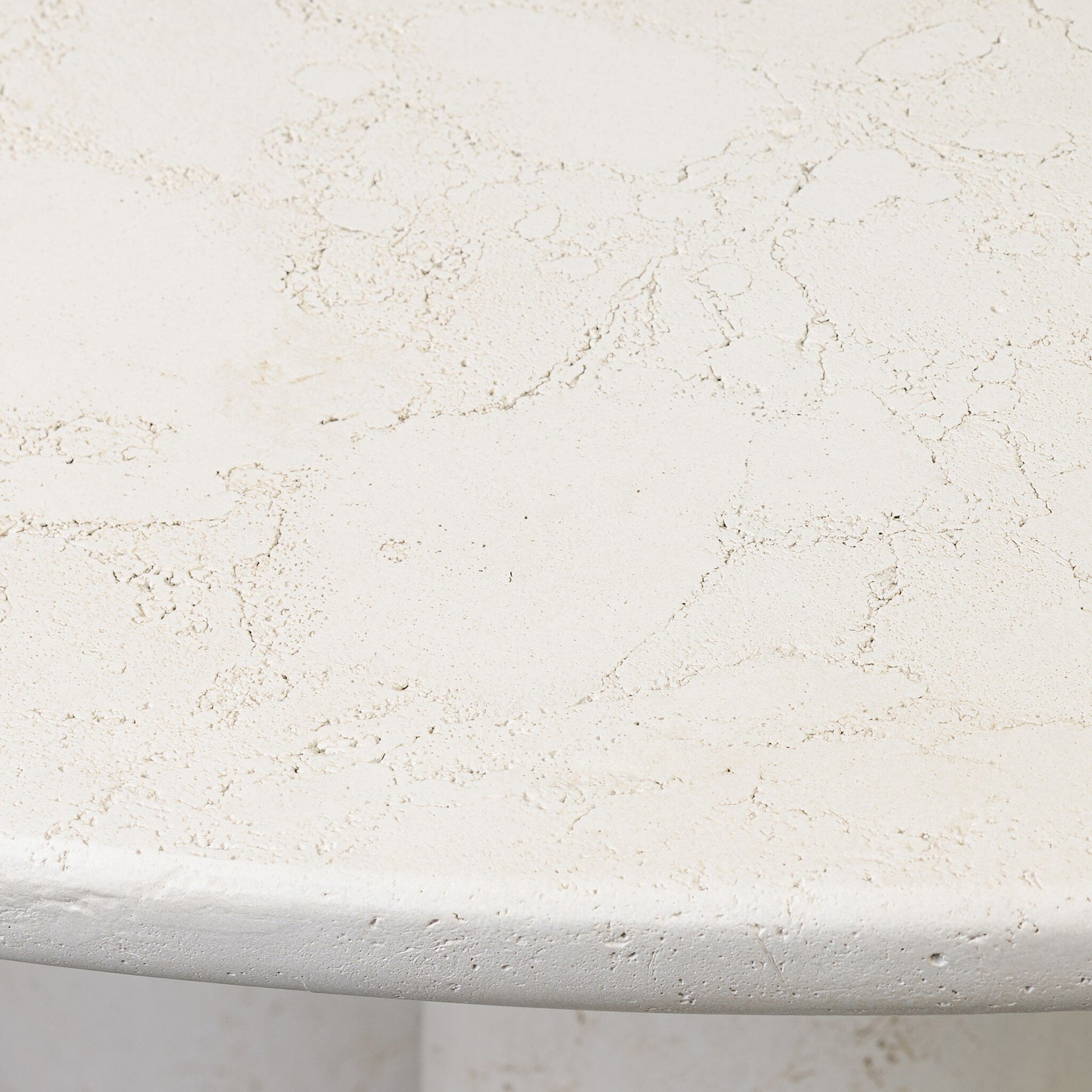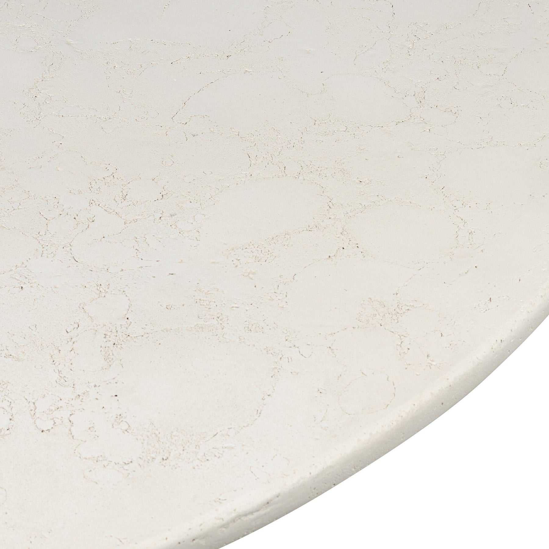 A play in proportion, simple shaping puts the focus on the texture of cast concrete. Three pedestal legs anchor the bullnose-edge top of this outdoor dining table. Cover or store indoors when not in use or during inclement weather.