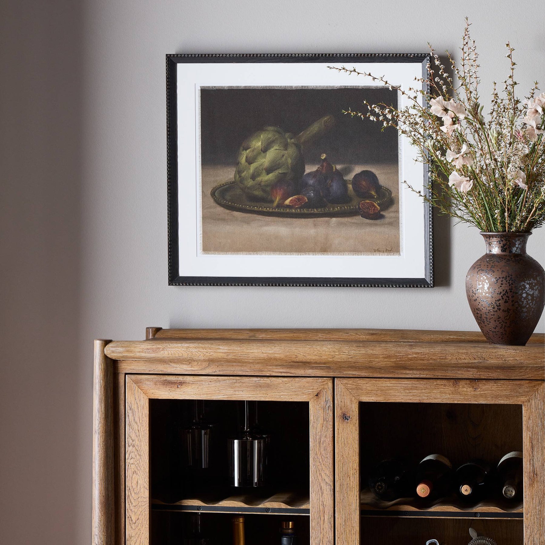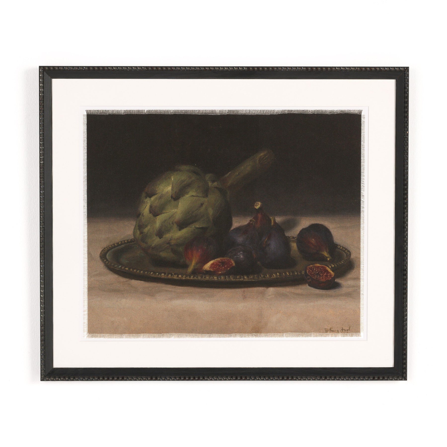 A fifth-generation artist, oil painter Bethany Joseph specializes in portraits and still lifes, painting on linen then layering and texturizing for depth. A native of Fort Worth, Texas, her realist pieces aim to represent the beauty of simplicity. Finished within a decorative Brimfield black frame of naturally distressed painted pine. Handmade in Austin, Texas.