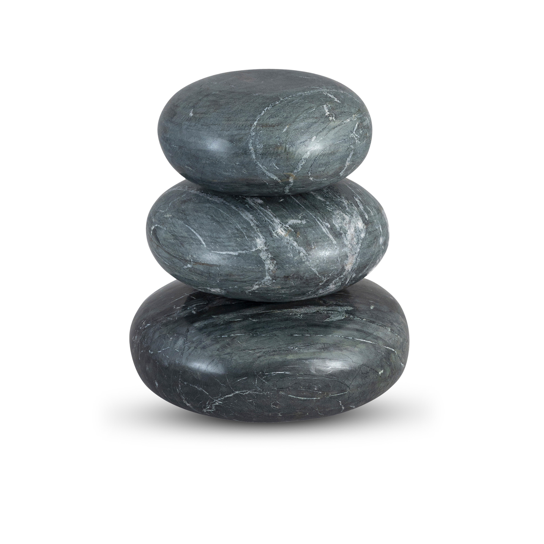 Carved from genuine marble. Each of the three rounded pieces showcases its own unique veining, creating a grounded yet artistic presence. Perfect for layering on a console or coffee table, they add sculptural elegance with an organic twist.