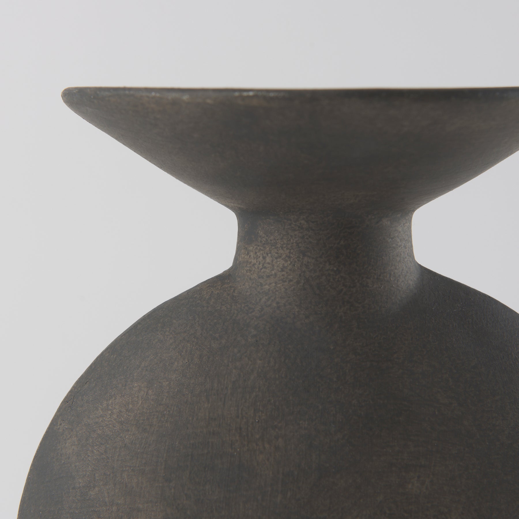 This elegant ceramic vase showcases a contemporary design, complemented by a textured, natural brown finish.