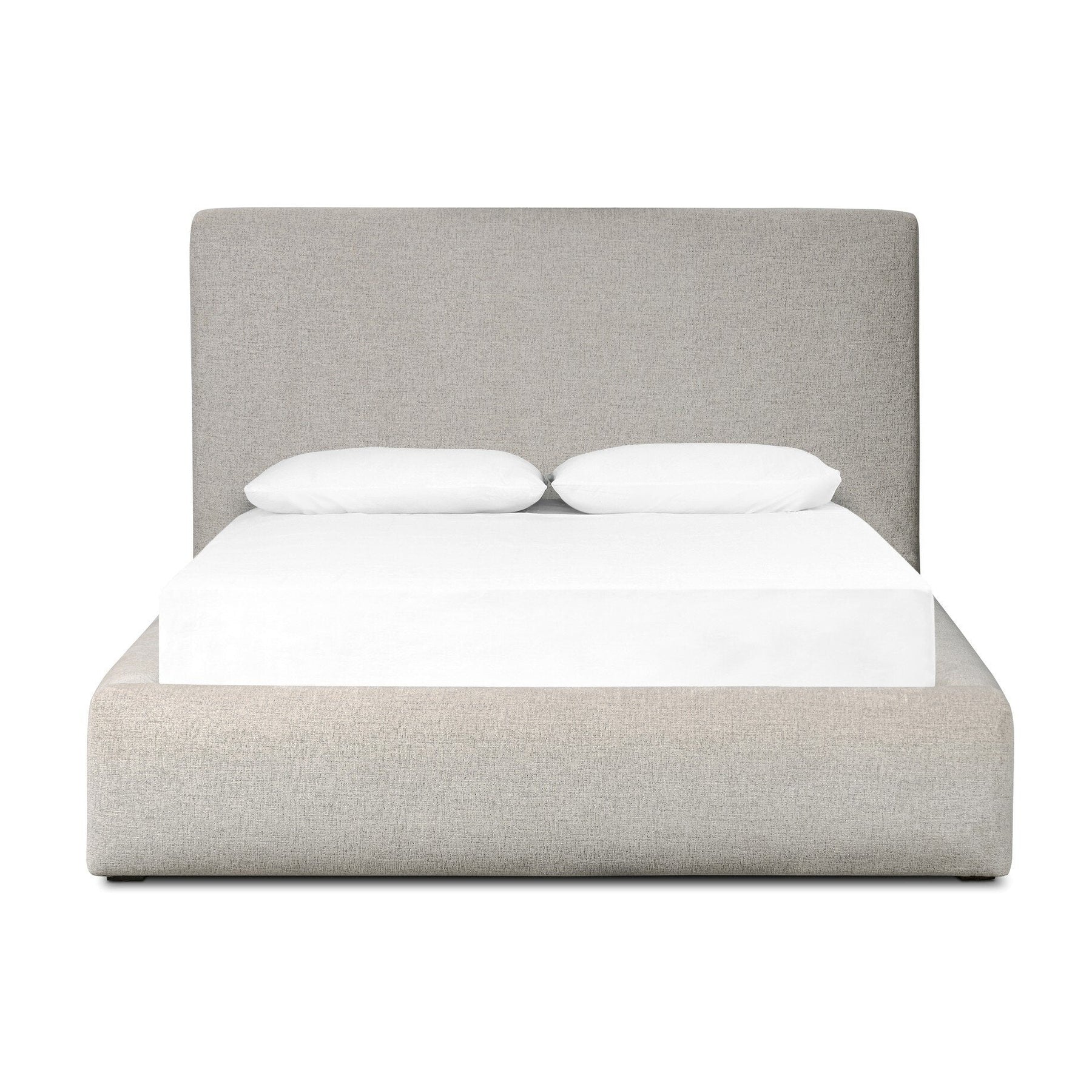 Modern, clean shaping meets inflated comfort with this padded, upholstered bed frame in a textural boucle-like pattern.