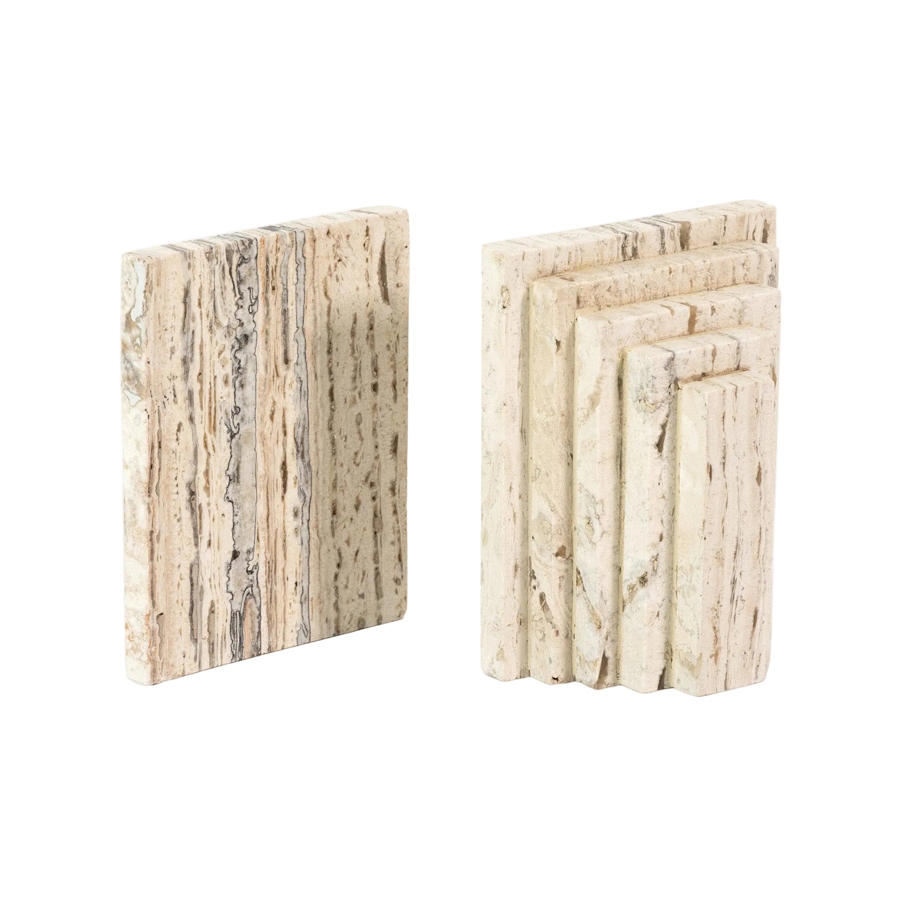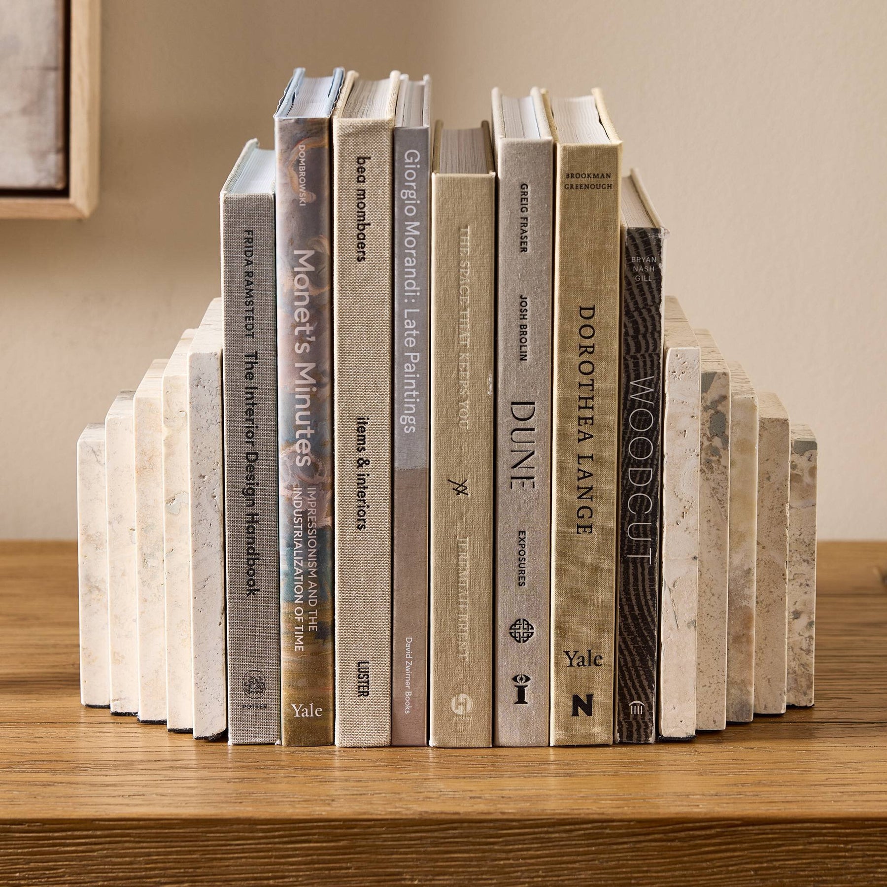 Made from solid white travertine, a set of stepped bookends crafts an organic, sophisticated look in a flash.