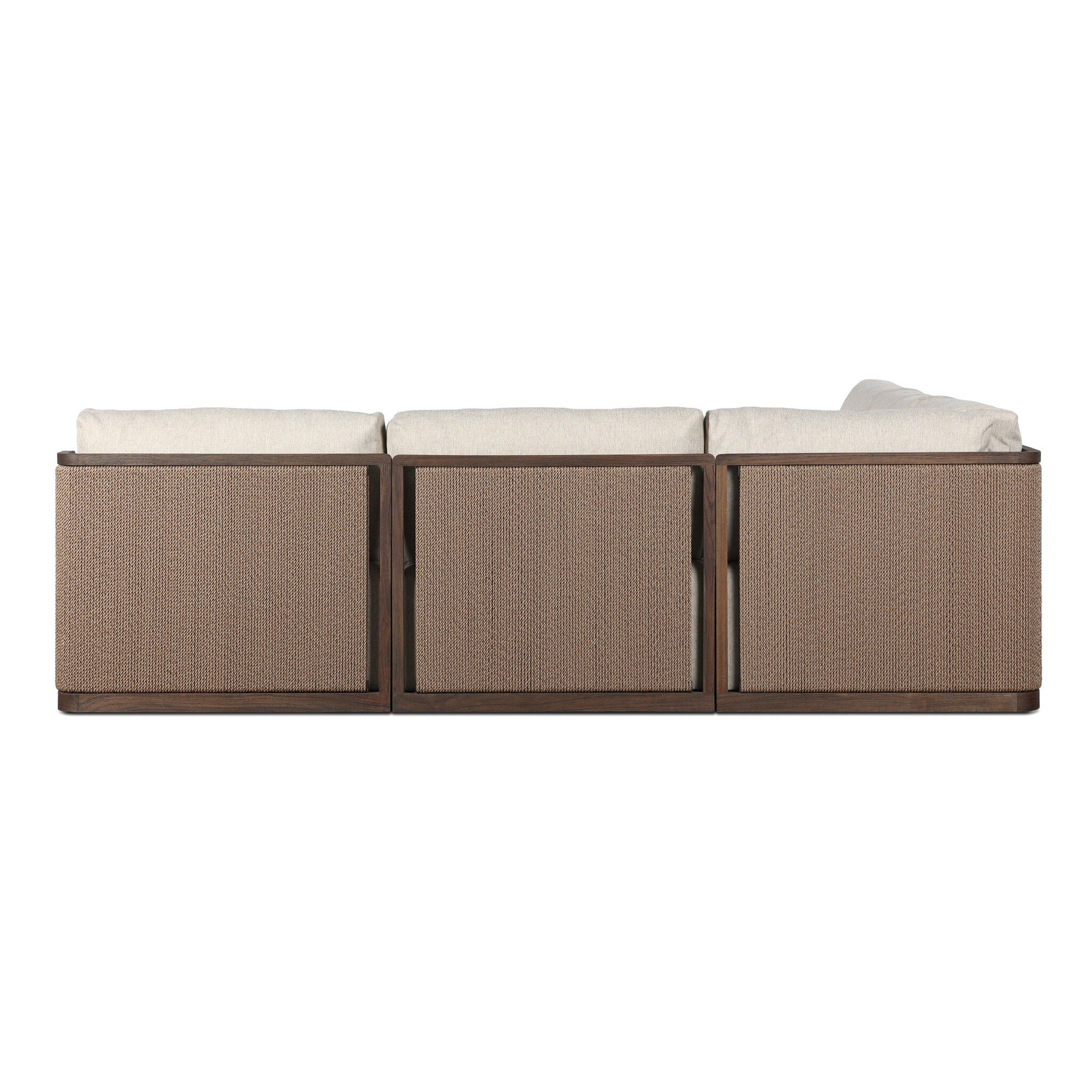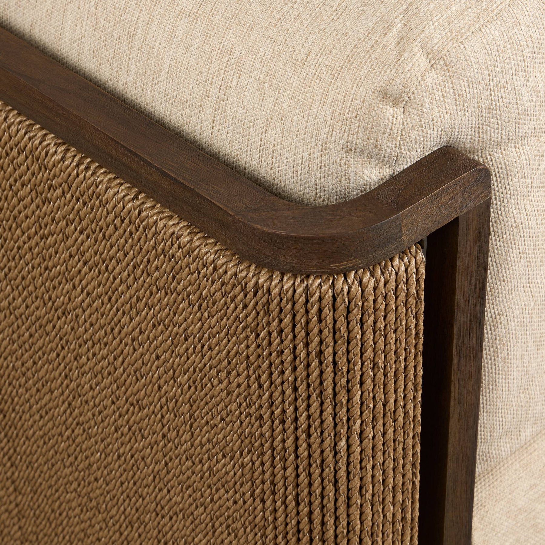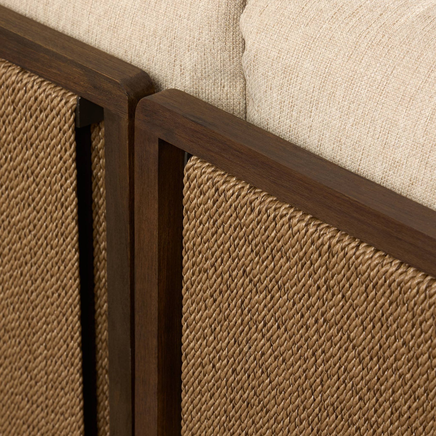 A play on proportion. Inspired by traditional materials and seating found in Japanese tea houses, this low profile style is framed by FSC®-certified teak. Accented by a woven cord detailing across the back and cream-colored cushions for a natural contrast. Cover or store inside during inclement weather and when not in use.