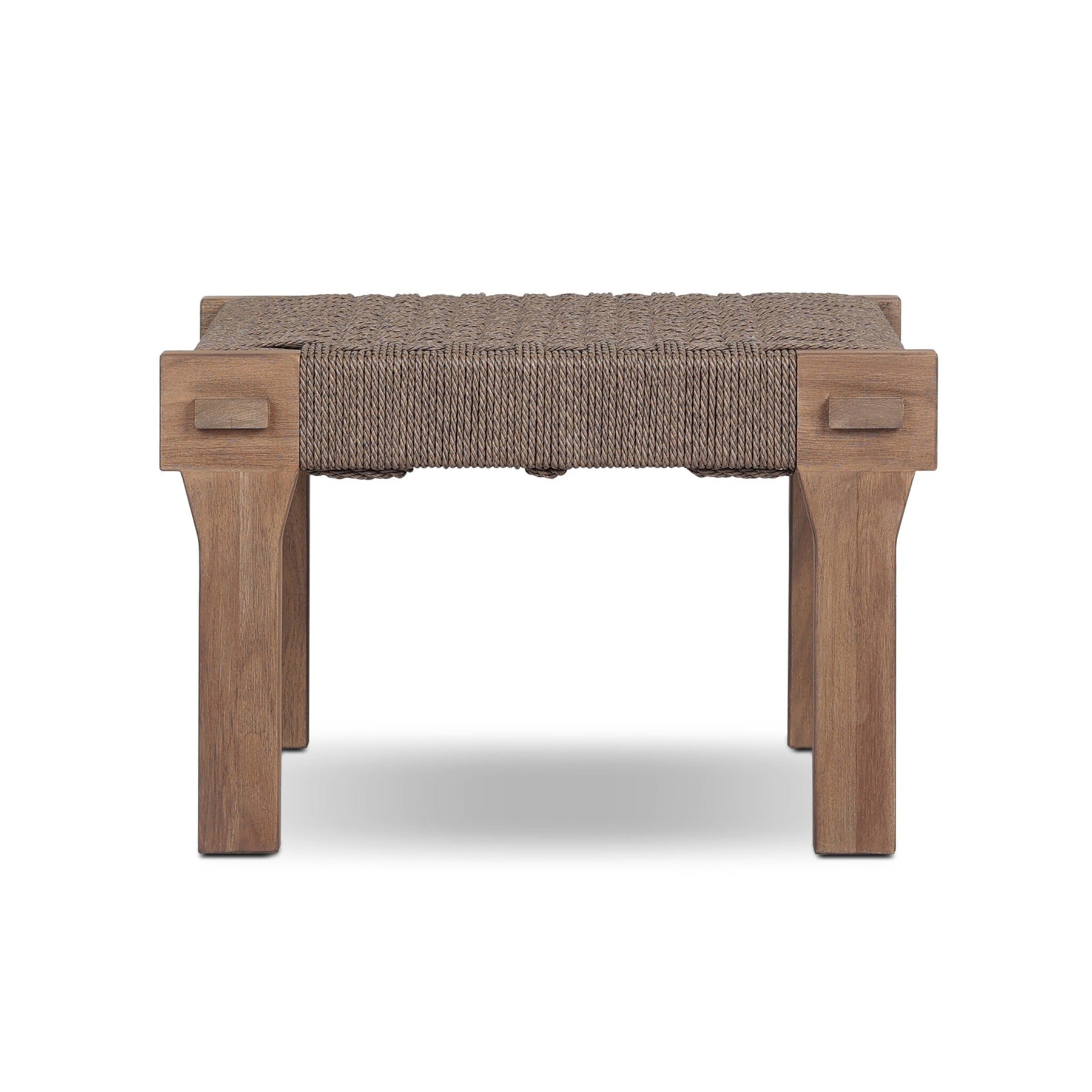 Create an outdoor space that transports you to far corners of the globe. Inspired by traditional designs found throughout Indonesia, this outdoor end table features a beautifully crafted frame made of FSC-certified solid teak with pull-through details and monochromatic weaving throughout. Cover or store indoors during inclement weather and when not in use.