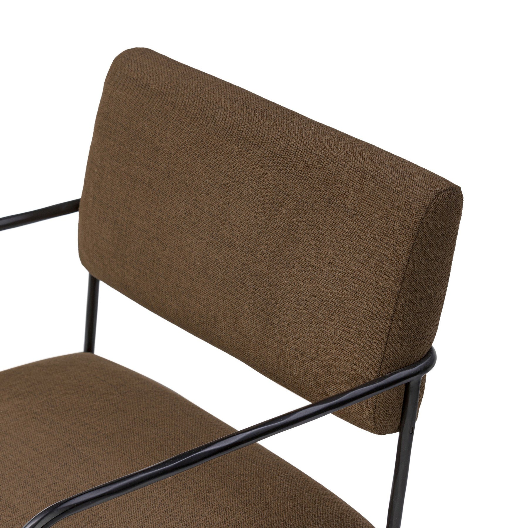 A dramatically slim frame of black hammered iron supports comfortable swivel seating upholstered in specialized performance fabric. Soft, easy to clean and free of PFAS, Crypton® performance fabric is specially engineered for protection against stains, moisture and odor.