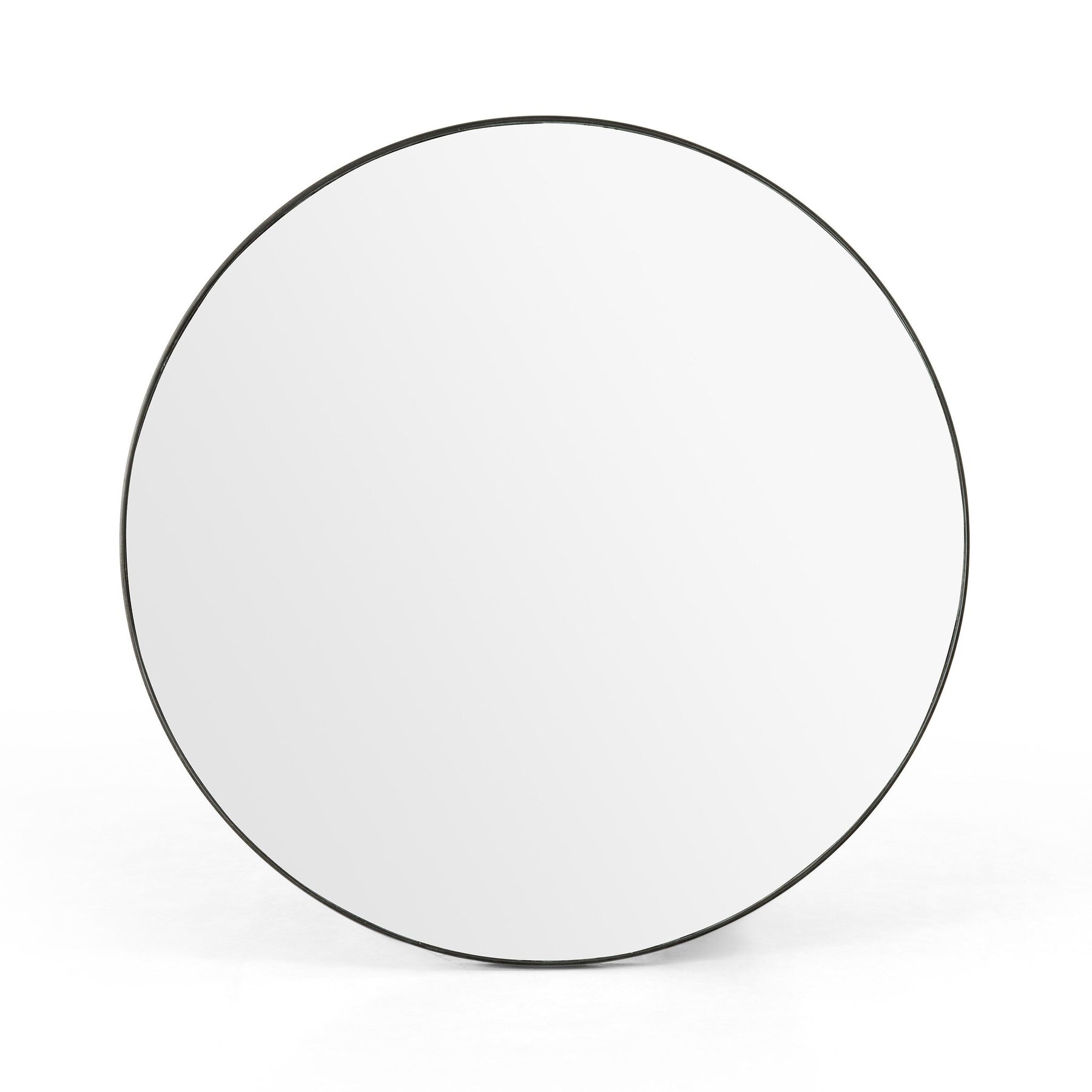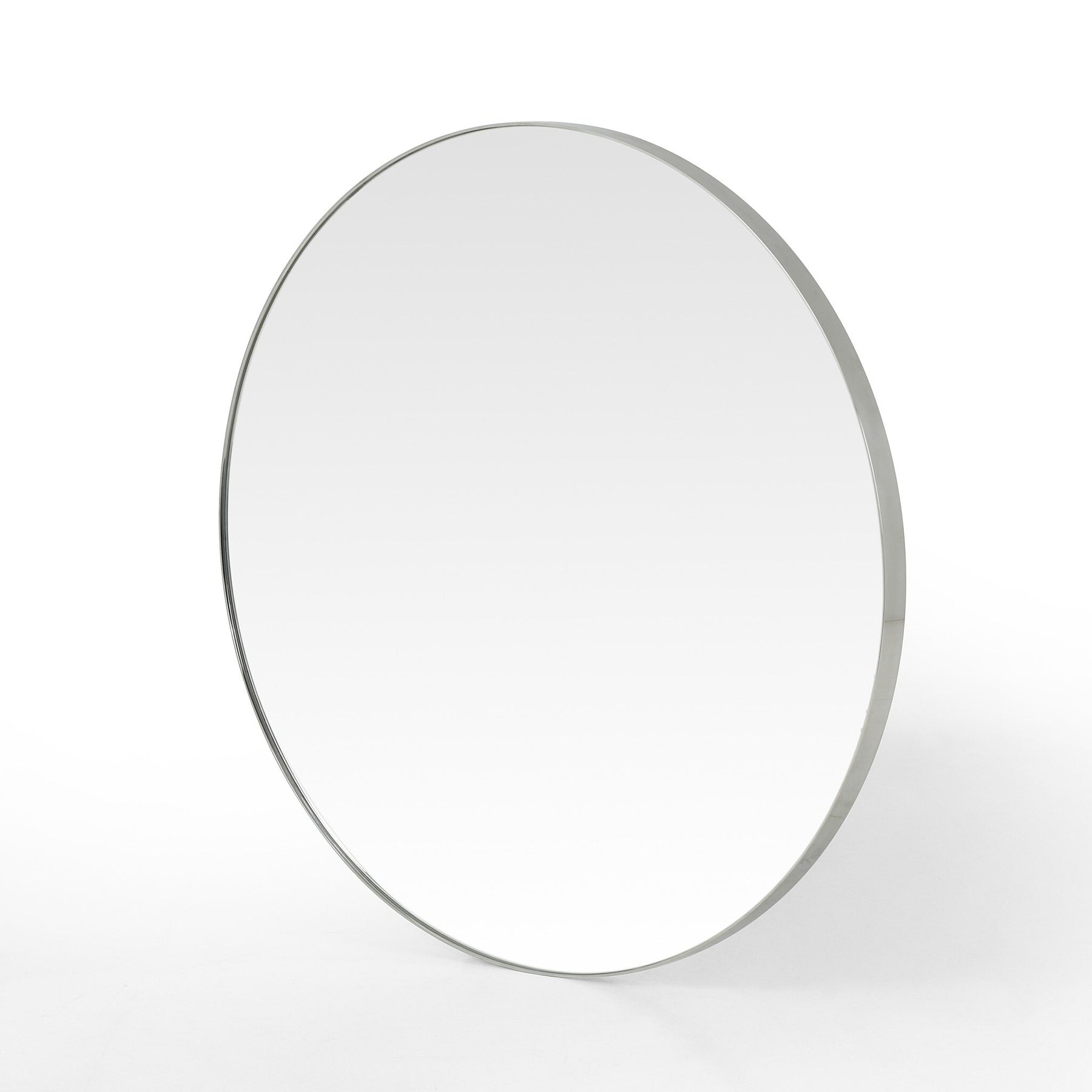Grace on the edge of modernity. Round stainless steel takes on a sleek, shiny, polished brass and black tone to let clean, mirrored glass speak for itself.