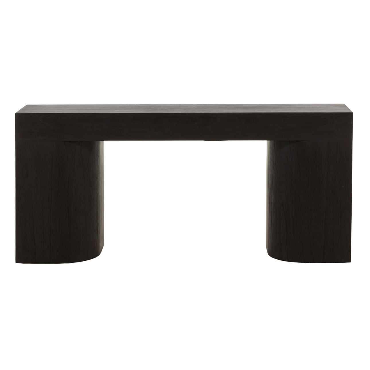 The Jaiden Console Table showcases the natural beauty of premium Mindi Wood Veneer, meticulously finished in a rich Dark Brown hue. This exquisite material choice offers the perfect balance of durability and refined aesthetics, with subtle grain patterns that add depth and character.