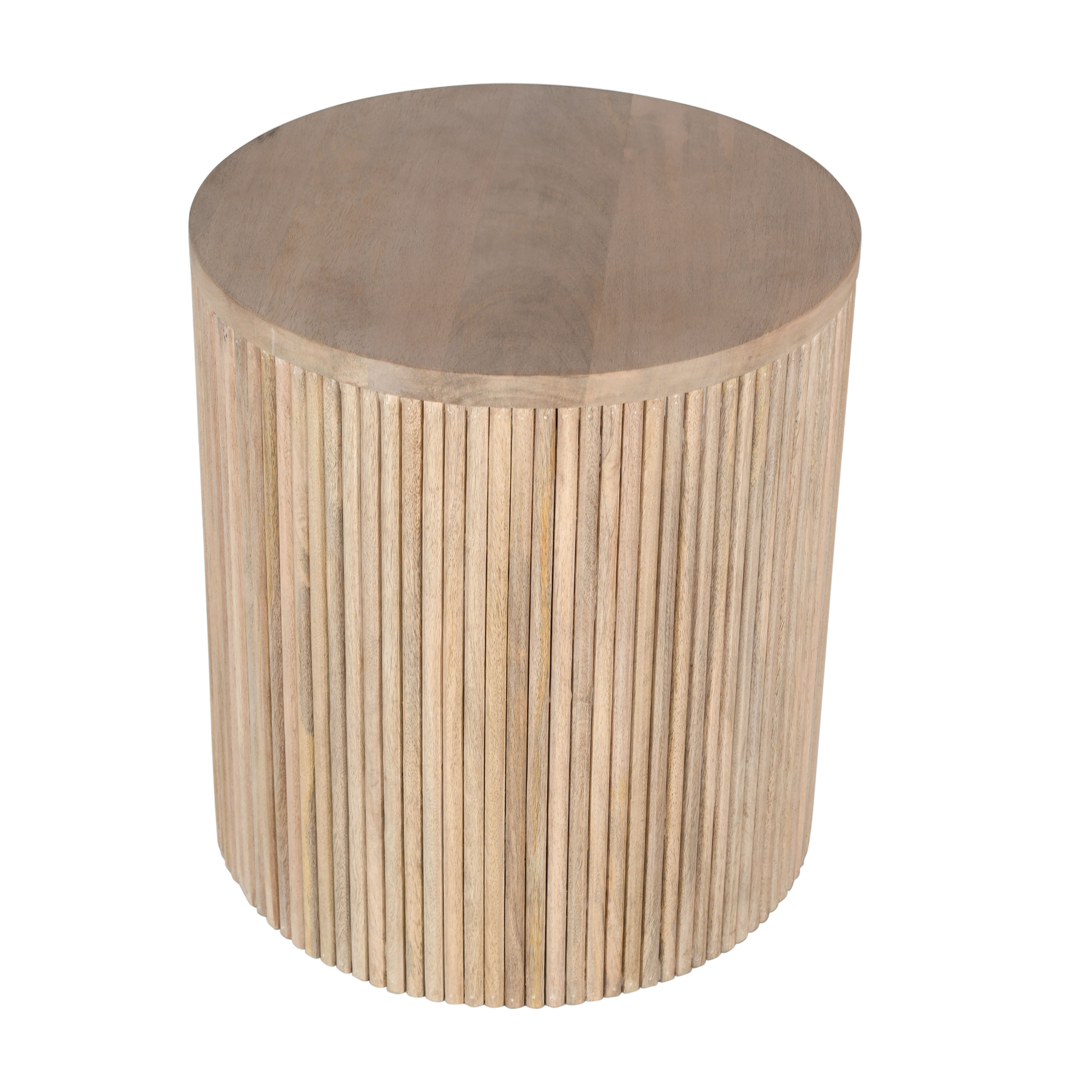 Bring contemporary design to the forefront with the addition of this Oaklyn End Table to your living room or den. This eye-grabbing design features solid mango wood construction, so you can count on its durable demeanor to hold up to the rigors of use in your busy home. The fluted wood design is chic and contemporary, adding a distinctive modern vibe to your room in an instant. A white oak finish tops off the look of this Oaklyn end table, adding to its visually striking beauty.