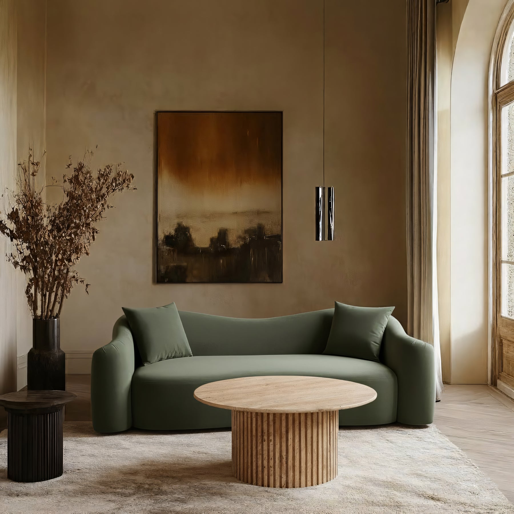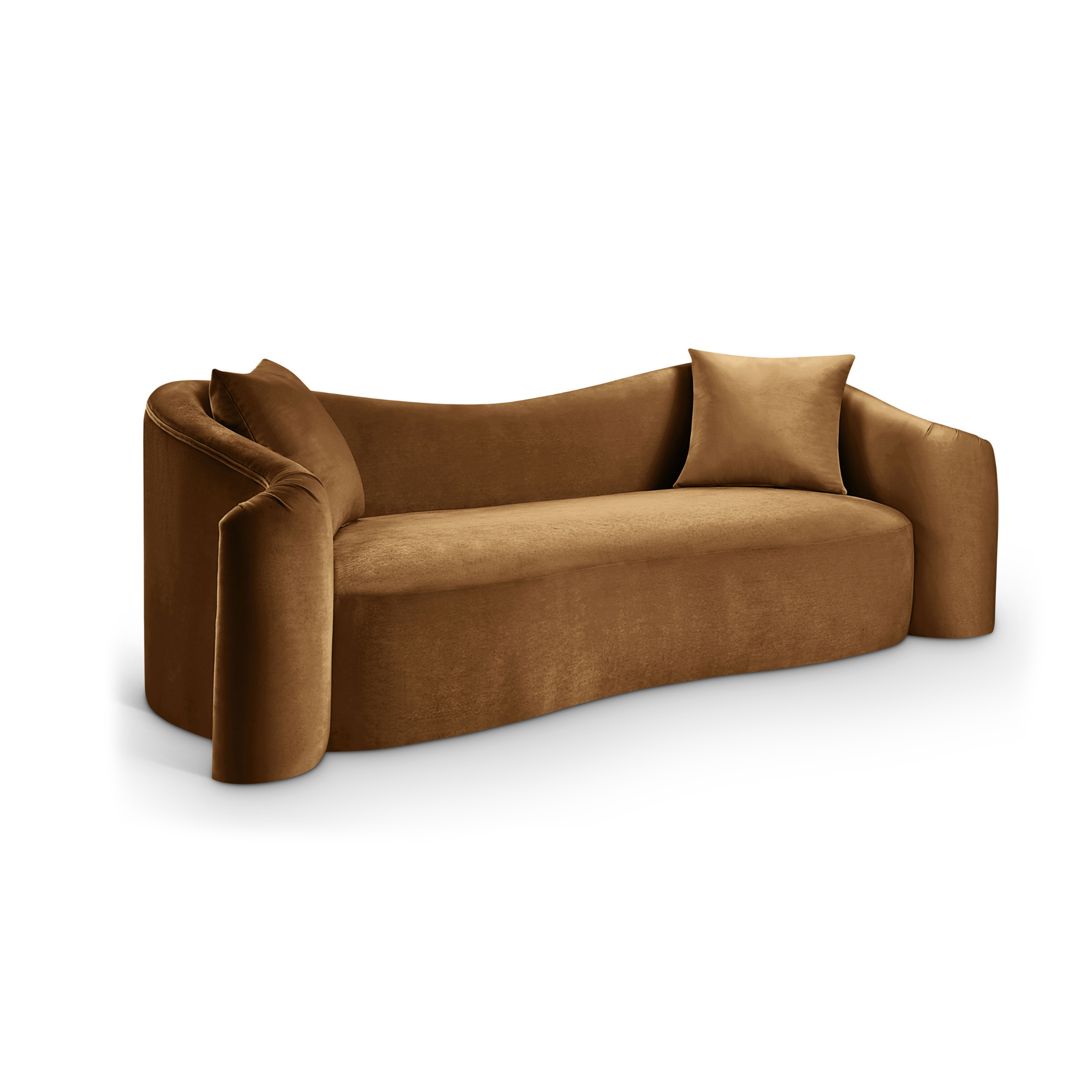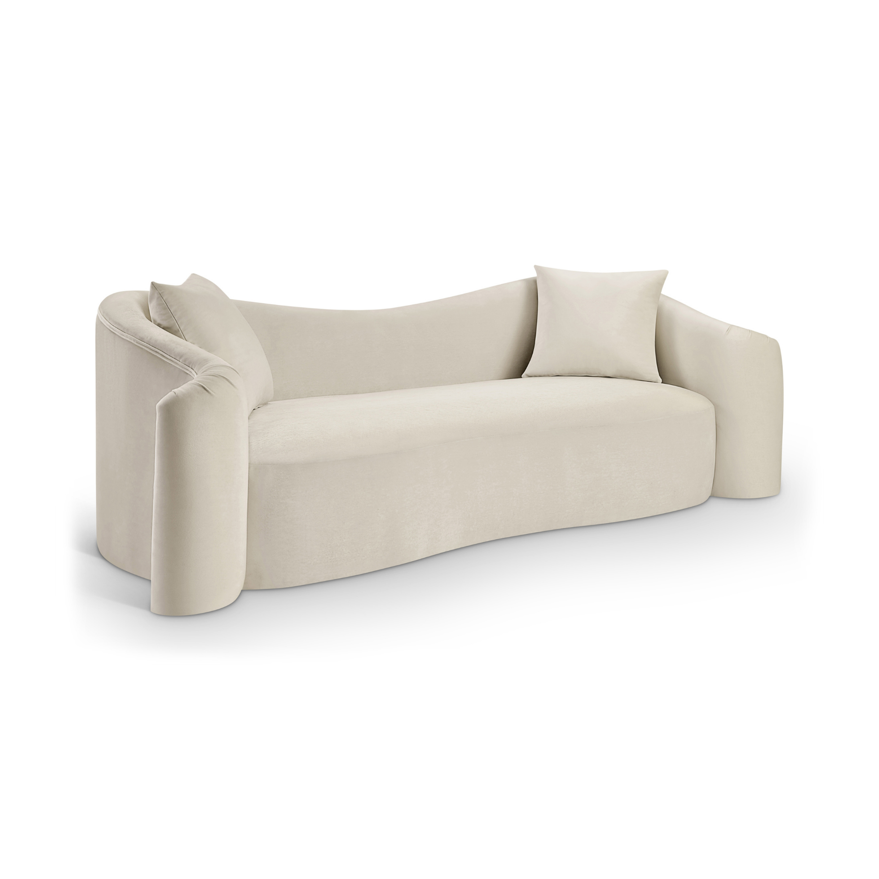 Indulge in pure luxury with the Daston velvet sofa, featuring plush, oversized cushions and soft velvet upholstery for optimal comfort. Wrap yourself in comfort with a structural masterpiece offering a refreshing yet timeless aesthetic. The organic curves and plush velvet create a truly unique and eye-catching design.