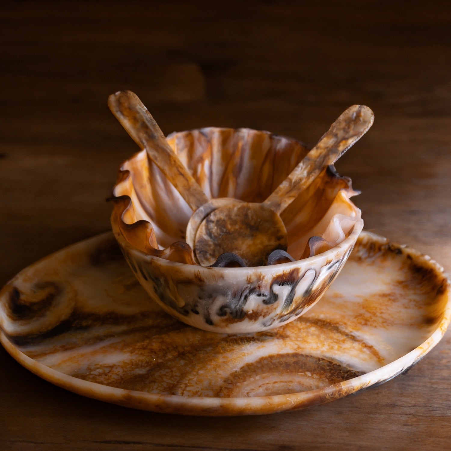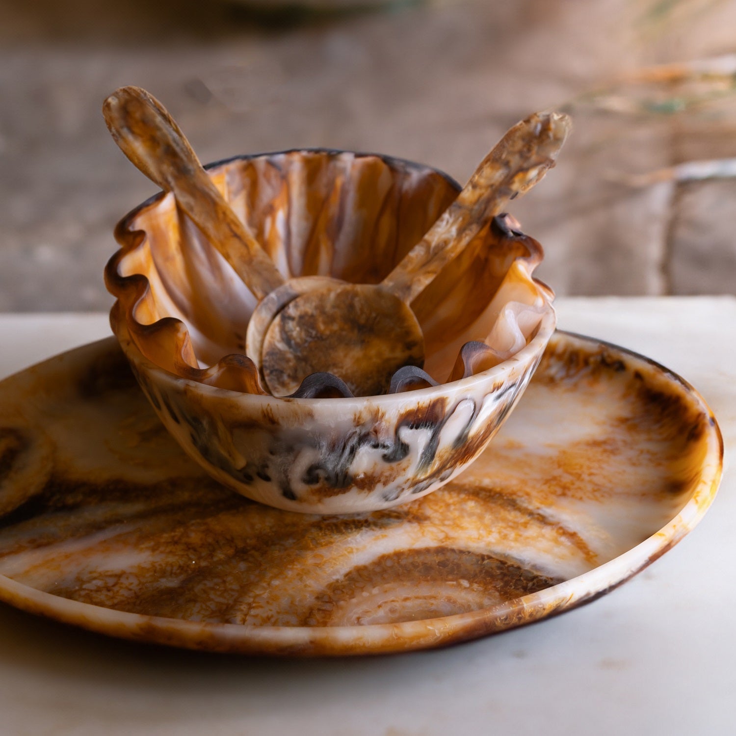 The Raegan Tray is a stylish and durable accessory made from resin mixed with colors and decorative elements, creating unique patterns. It resembles natural materials like marble or wood but is more resistant to moisture and scratches. Lightweight and strong, it’s ideal for serving or organizing items. Easy to clean, it keeps its polished look, adding a refined and modern accent to any space.