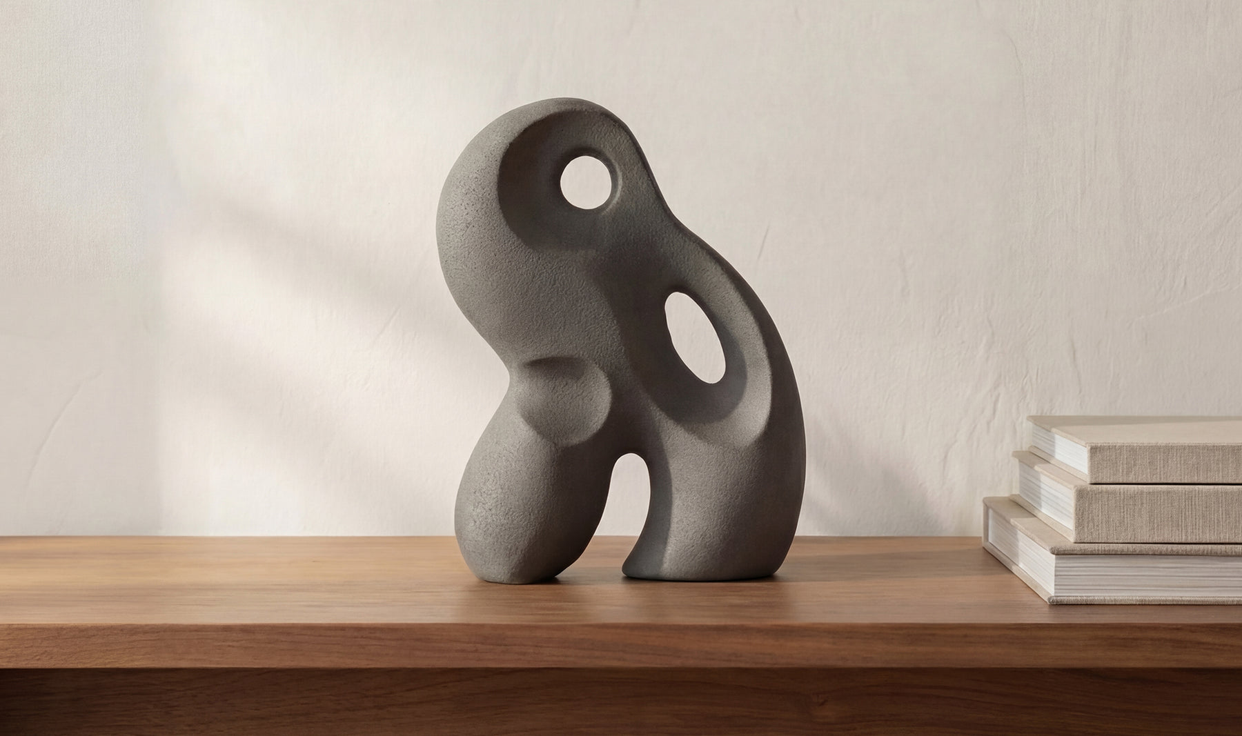 Big presence. Smart materials. Dara's freeform silhouette twists just enough to feel intentional, with a chalky, stone-like finish that reads bold—but keeps it light. Made from GRS-certified paper, it plays up texture without the weight. Abstract but approachable—because pedestals need personality.