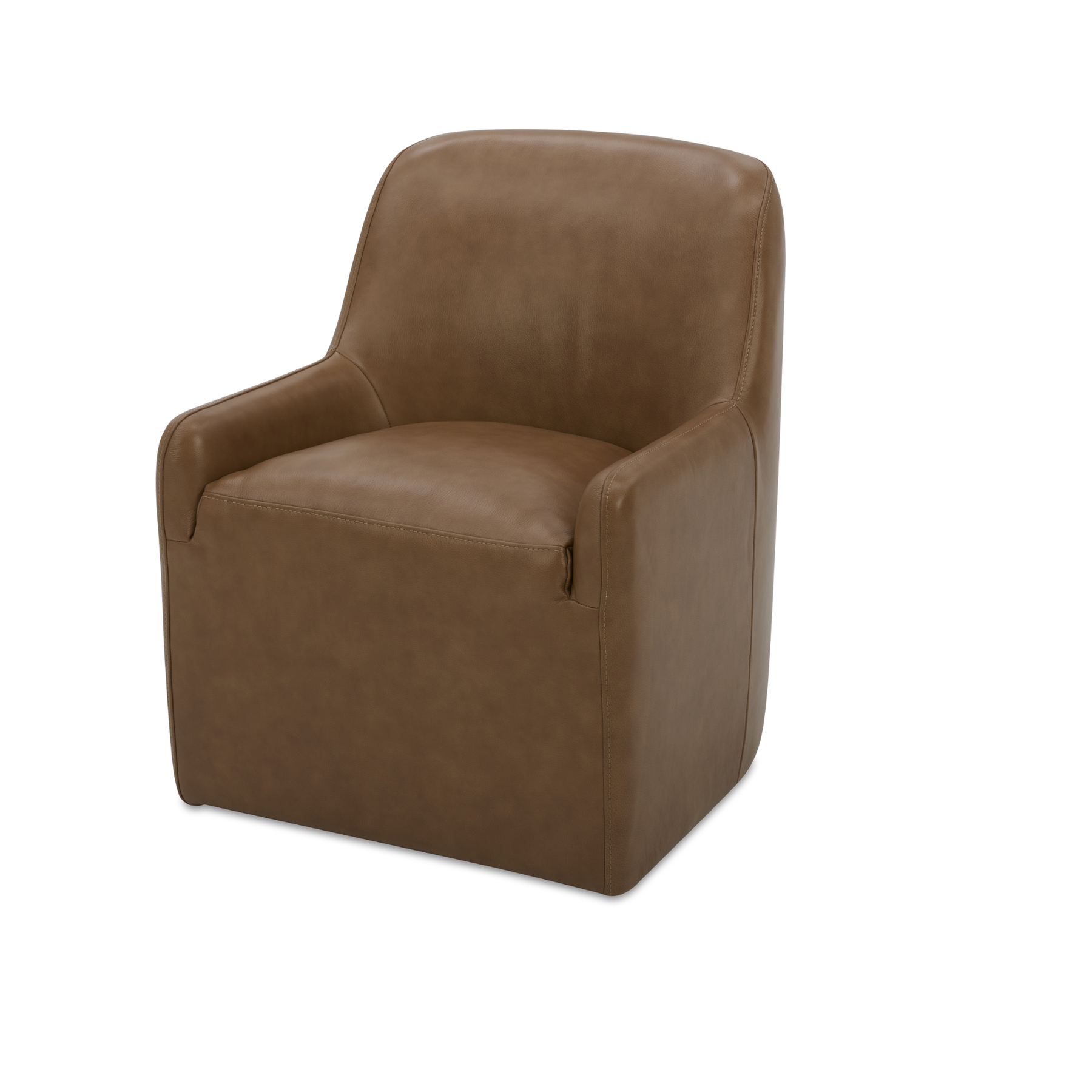 For movers, loungers, and multitaskers. Mara doesn’t sit still, and neither do you. With a generously padded seat, curved back, and smooth-rolling casters, it’s built for swiveling between snacks, spreadsheets, and second helpings. Wrapped in soft fabric upholstery or in rich top-grain leather, the tailored silhouette looks sharp at the table and right at home wherever it lands.