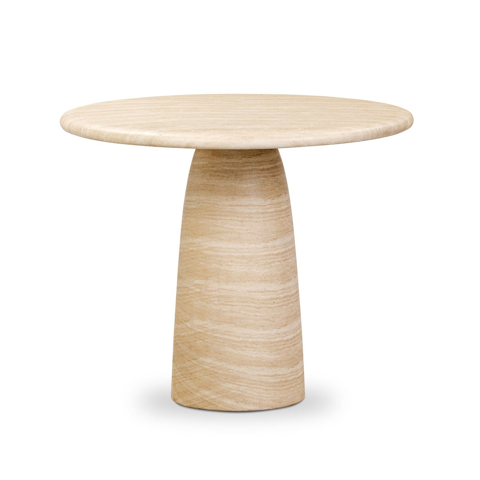 A water transfer pattern brings a travertine look and touch-feel to classic concrete. Beautiful graining will vary from piece to piece, for total novelty. Style indoors or out. Cover or store inside during inclement weather and when not in use.