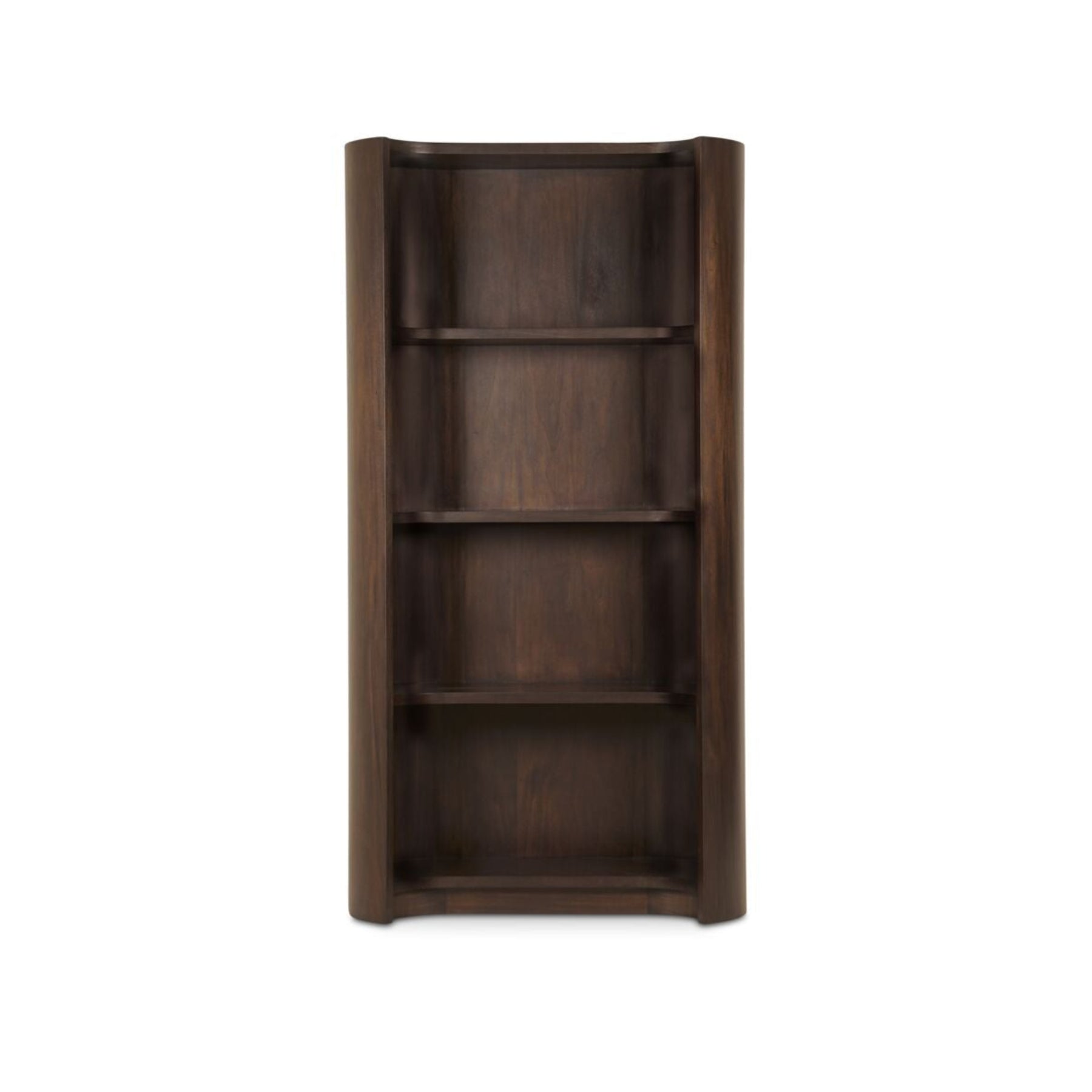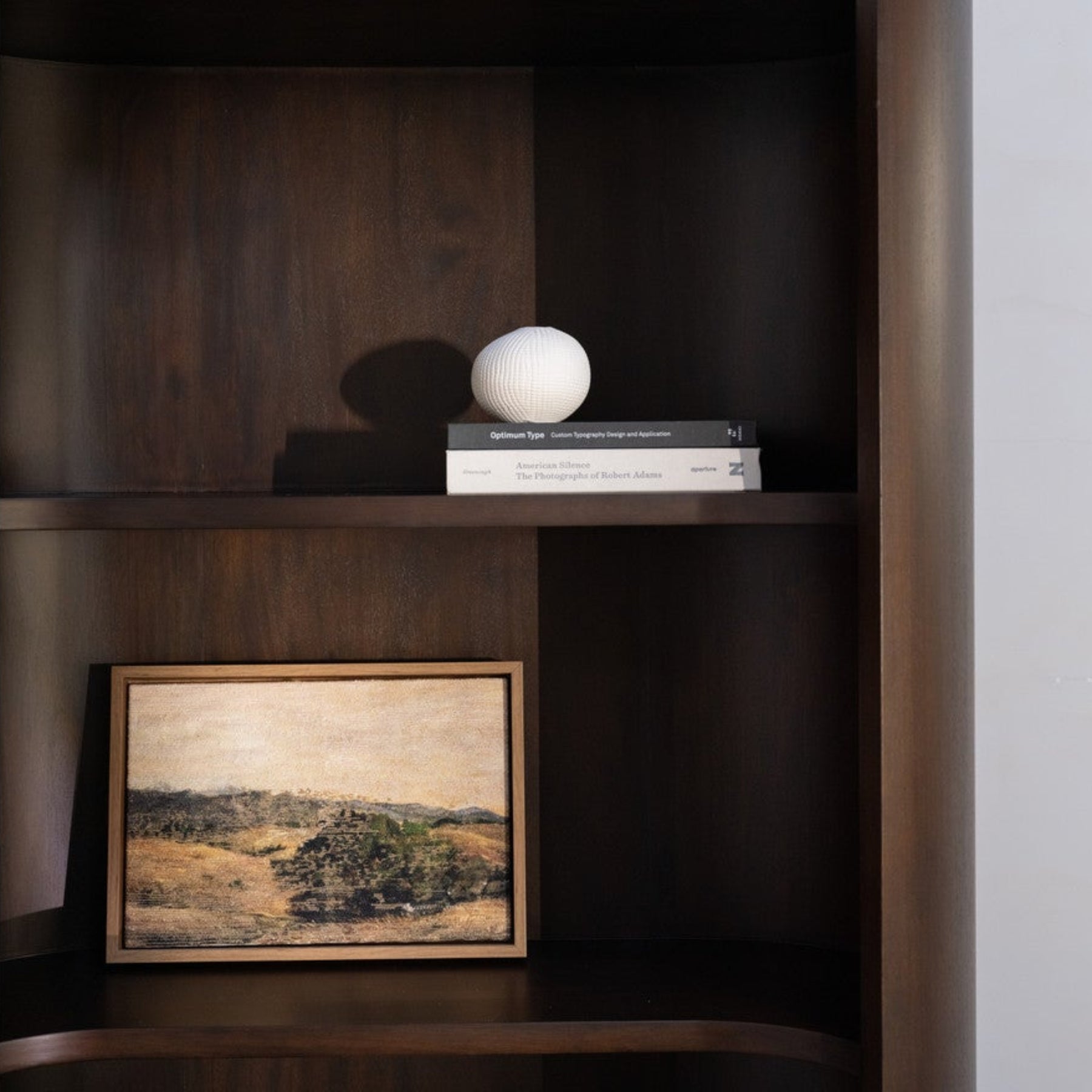 Storage that deserves to be displayed. Nero softens the standard bookshelf silhouette with sculptural curves and a warm mahogany finish. Rounded sides and gently arched shelves mirror each other for a cohesive, elevated look. With four spacious tiers and a design that feels just as thoughtful empty as it does filled, it’s functional, foundational, and totally shelf-assured.