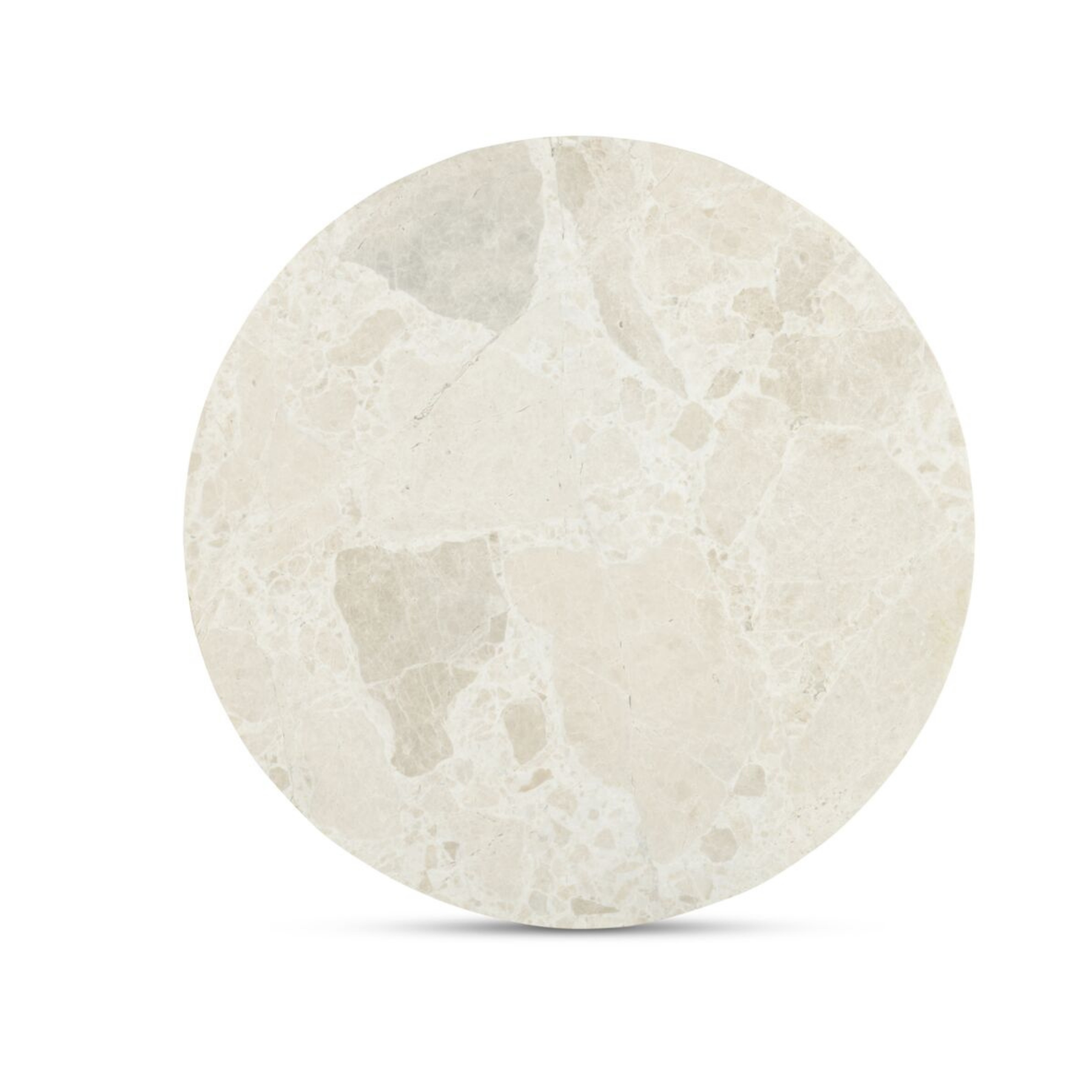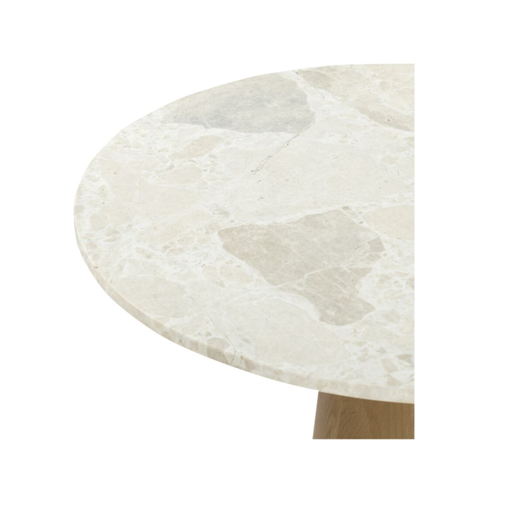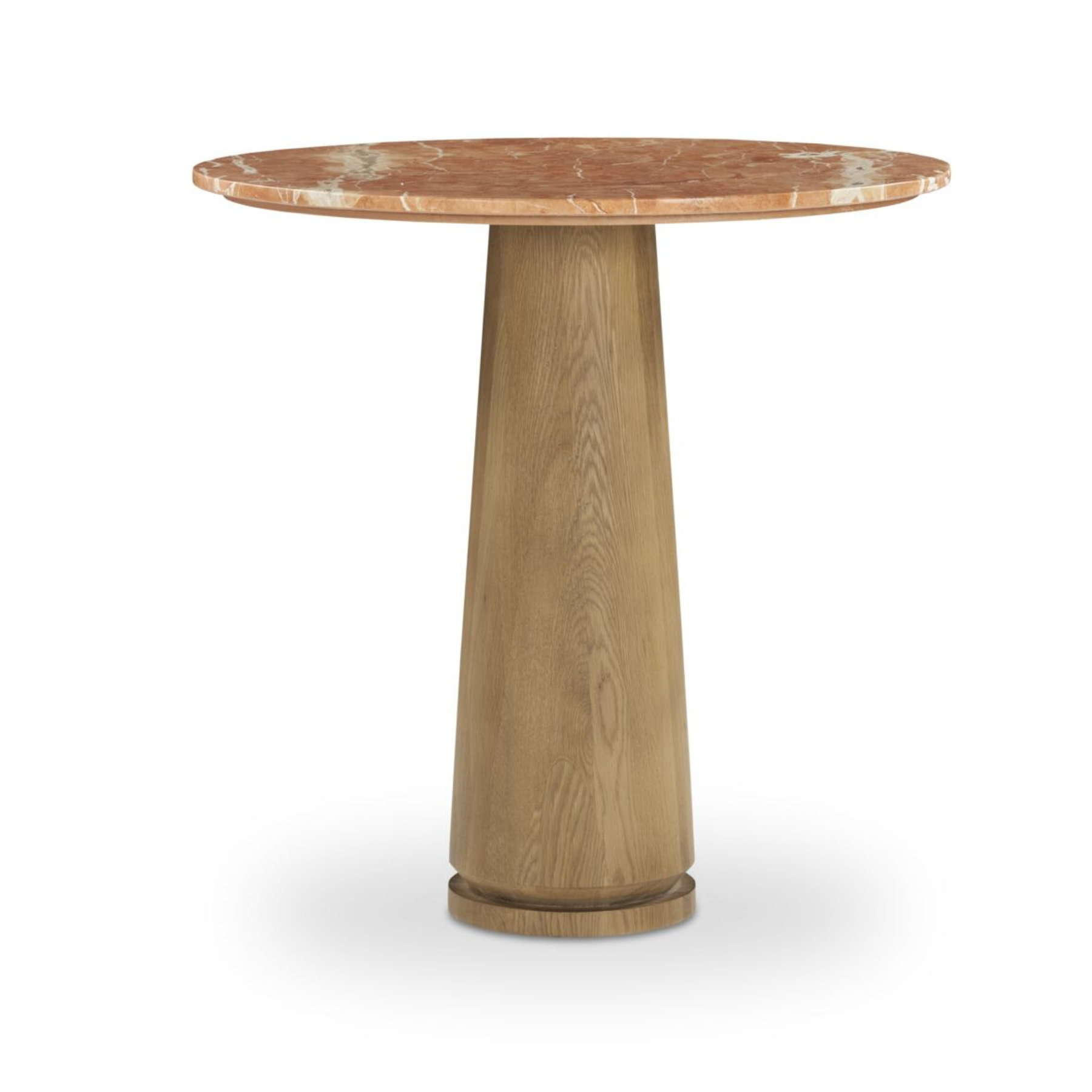 Soft stone, solid impression. Paige balances polish and warmth like it’s second nature. A smooth Cosmos marble top sets the tone with soft beige veining, while the sculpted oak pedestal base brings the craft. Subtle carving at the base adds a touch of detail to ground the shape—and catch the eye. Natural materials, modern proportions, and made to make an entrance.