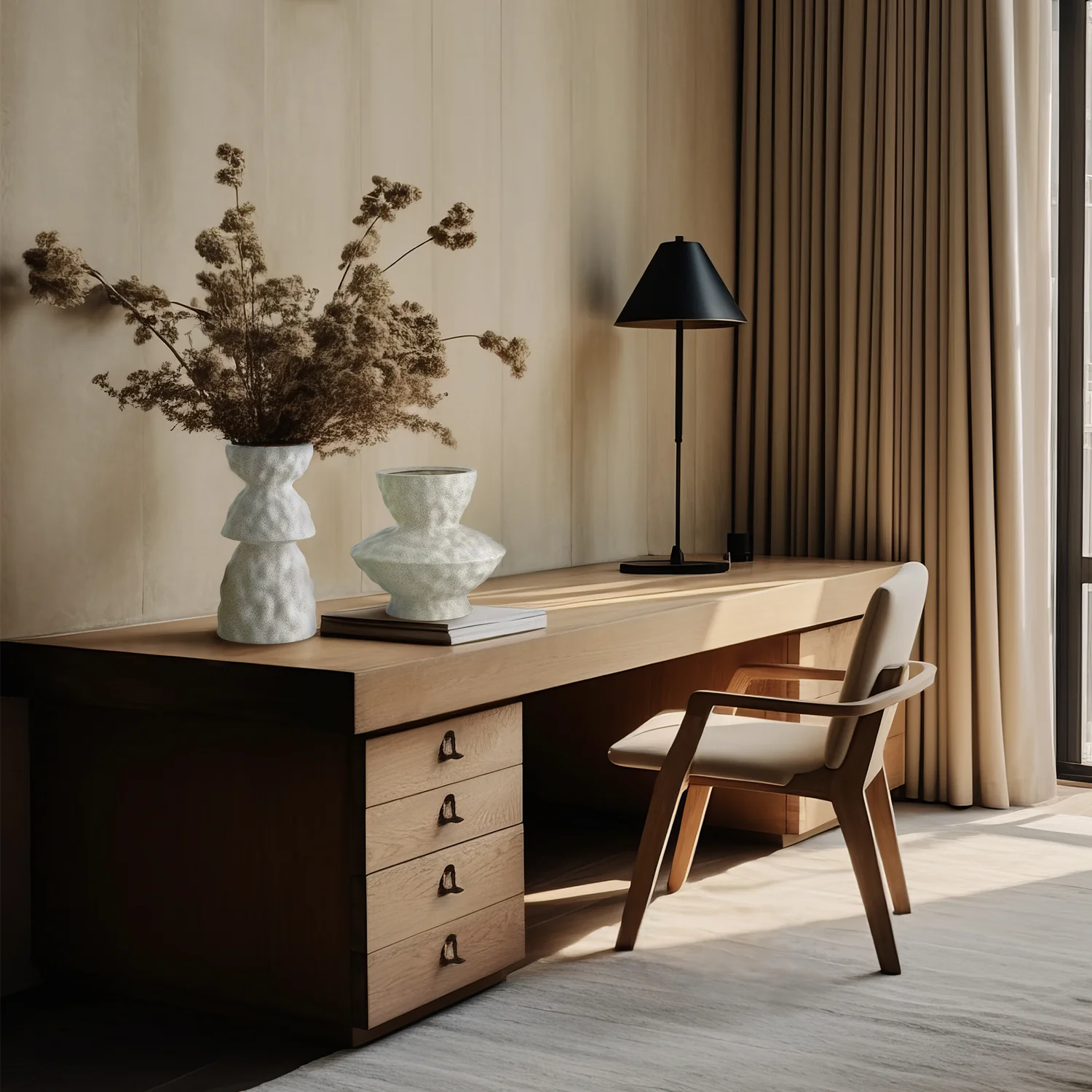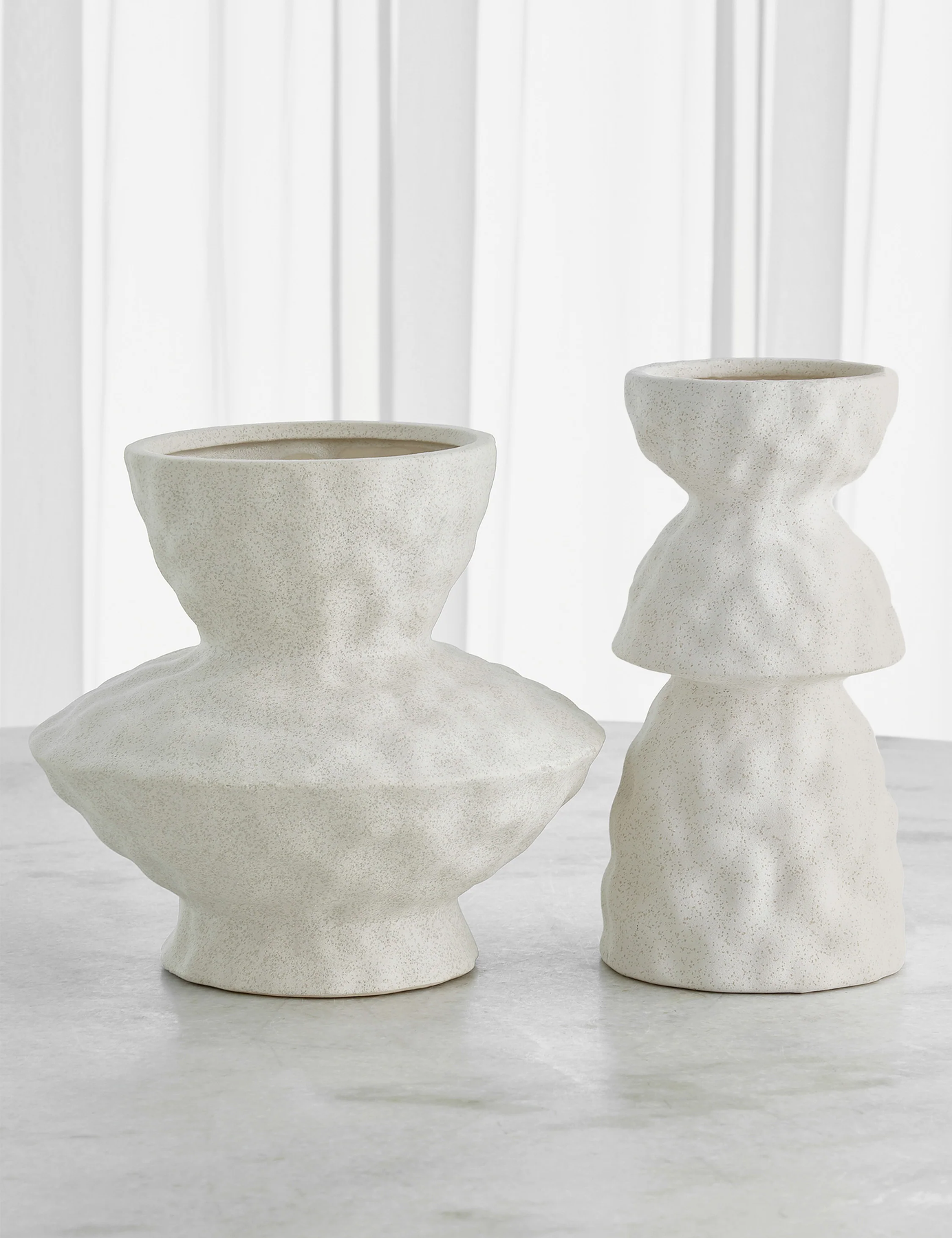 Crafted with meticulous attention to detail, the vases' organic ceramic forms mimic the gentle curves and lines found in nature, evoking a sense of tranquility and serenity. The soft and matte finish of the plaster-like finish enhances its organic appeal, making the vases unique and stunning centerpiece that effortlessly complements any interior design aesthetic.