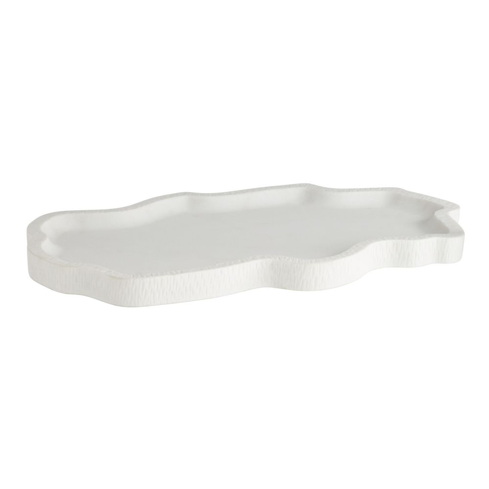 This shallow tray, cast from ivory riverstone composite, recalls the flowing and rippling shapes found in natural cave formations. Finish will vary.