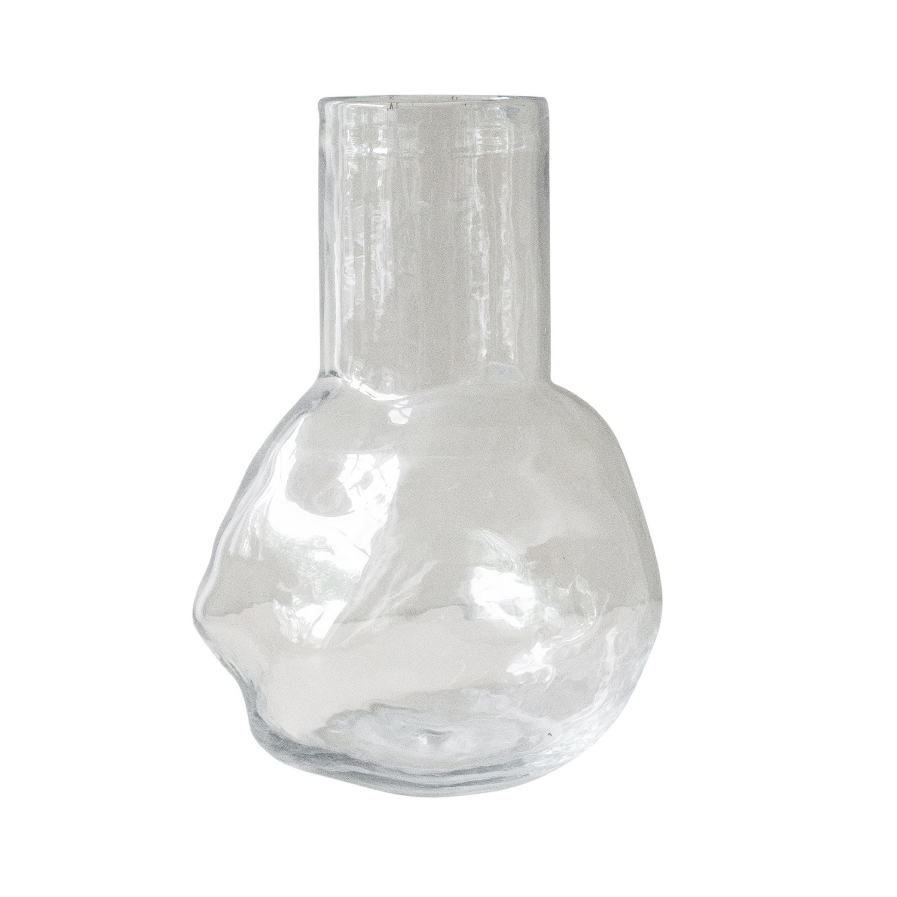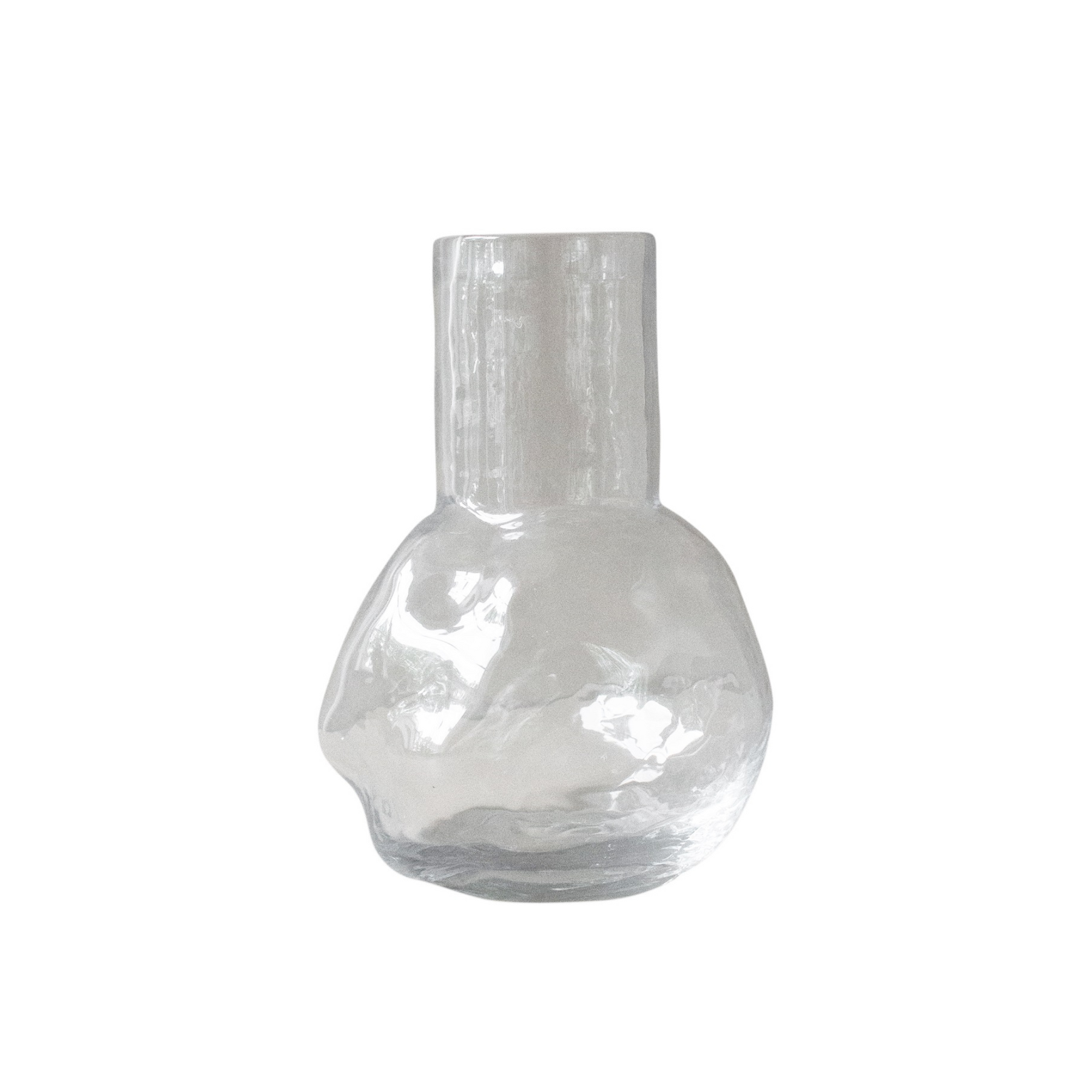 A substantial vase with a round bottom that can hold a lot of water. The neck of the bunch means that not many flowers are needed to fill it. Available in two sizes, small and large.