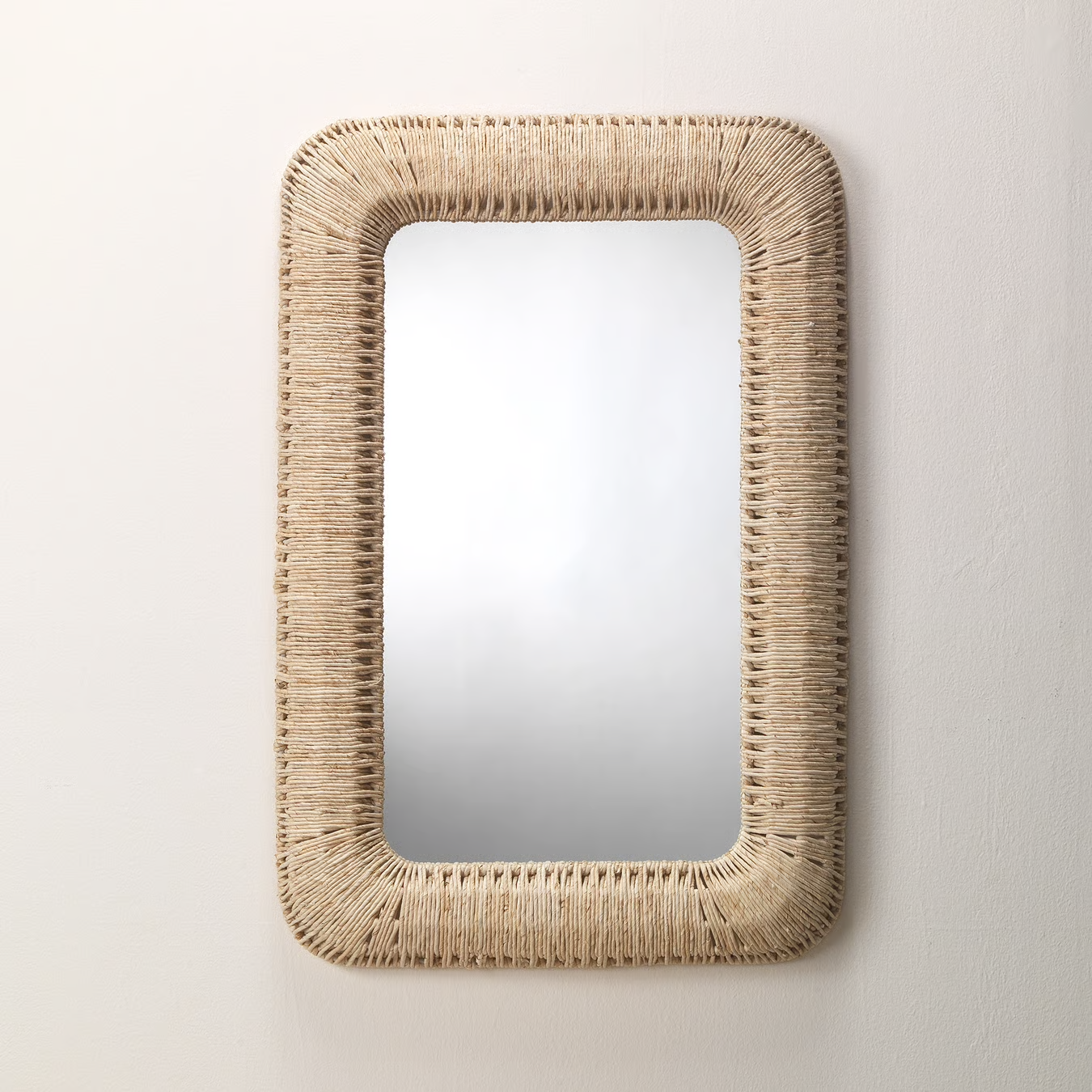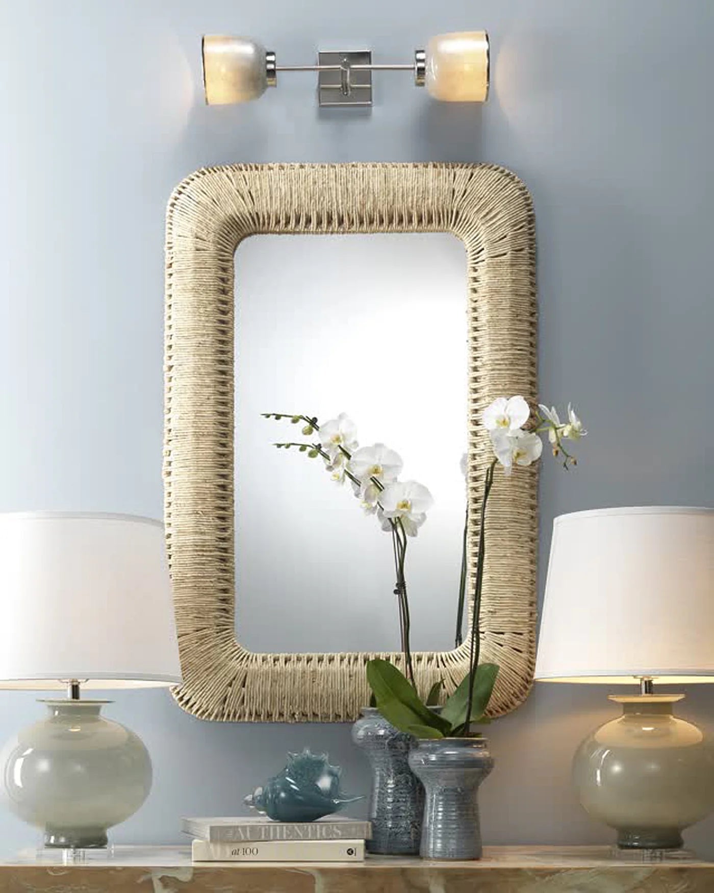 Crafted by expert artisans, every inch of the Hansel mirror’s frame is painstakingly, and artistically, wrapped in rope created from sustainably harvested corn straw. The intrinsic beauty of the natural material is allowed to take center stage, and flaws in the organic material are celebrated. The look is tropical yet sophisticated, and perfectly at home in today’s more casual decors.