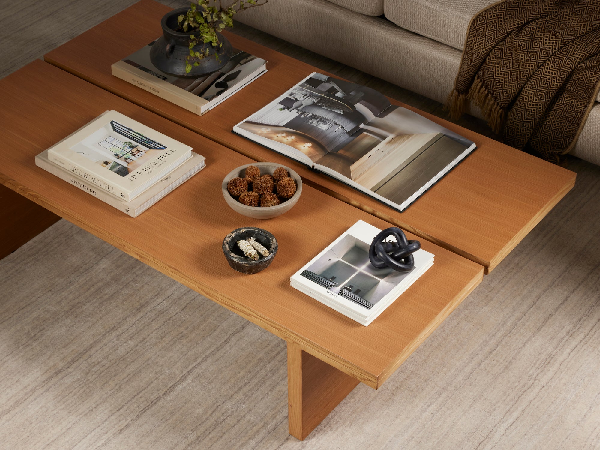 Smoked black or Grey finished oak shapes an elongated coffee table, rich with reeding. Subtly rounded edges reflect Brazilian midcentury inspiration behind this crafted minimalist piece. Designed in partnership with longtime Four Hands collaborator Thomas Bina and designer Ronald Sasson.