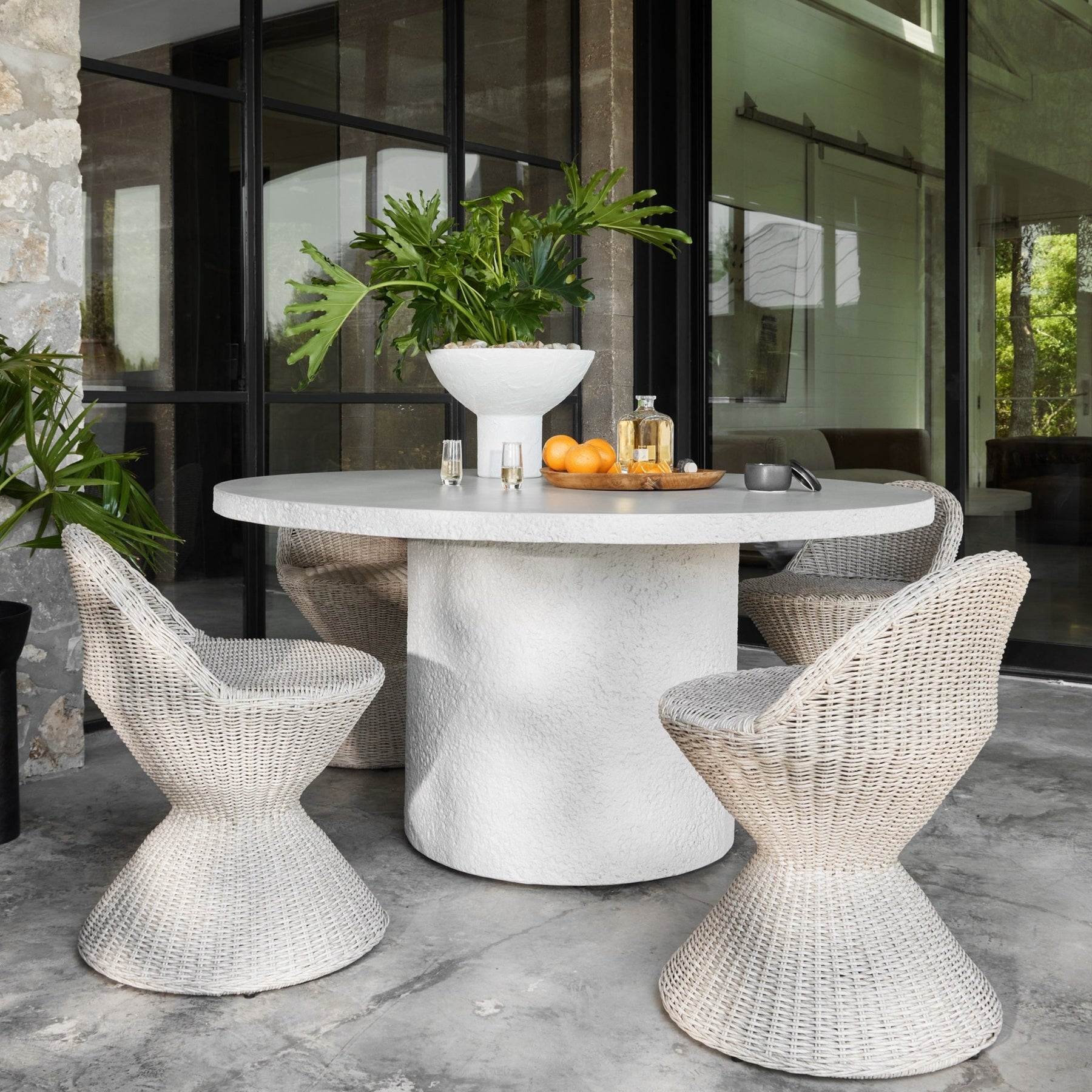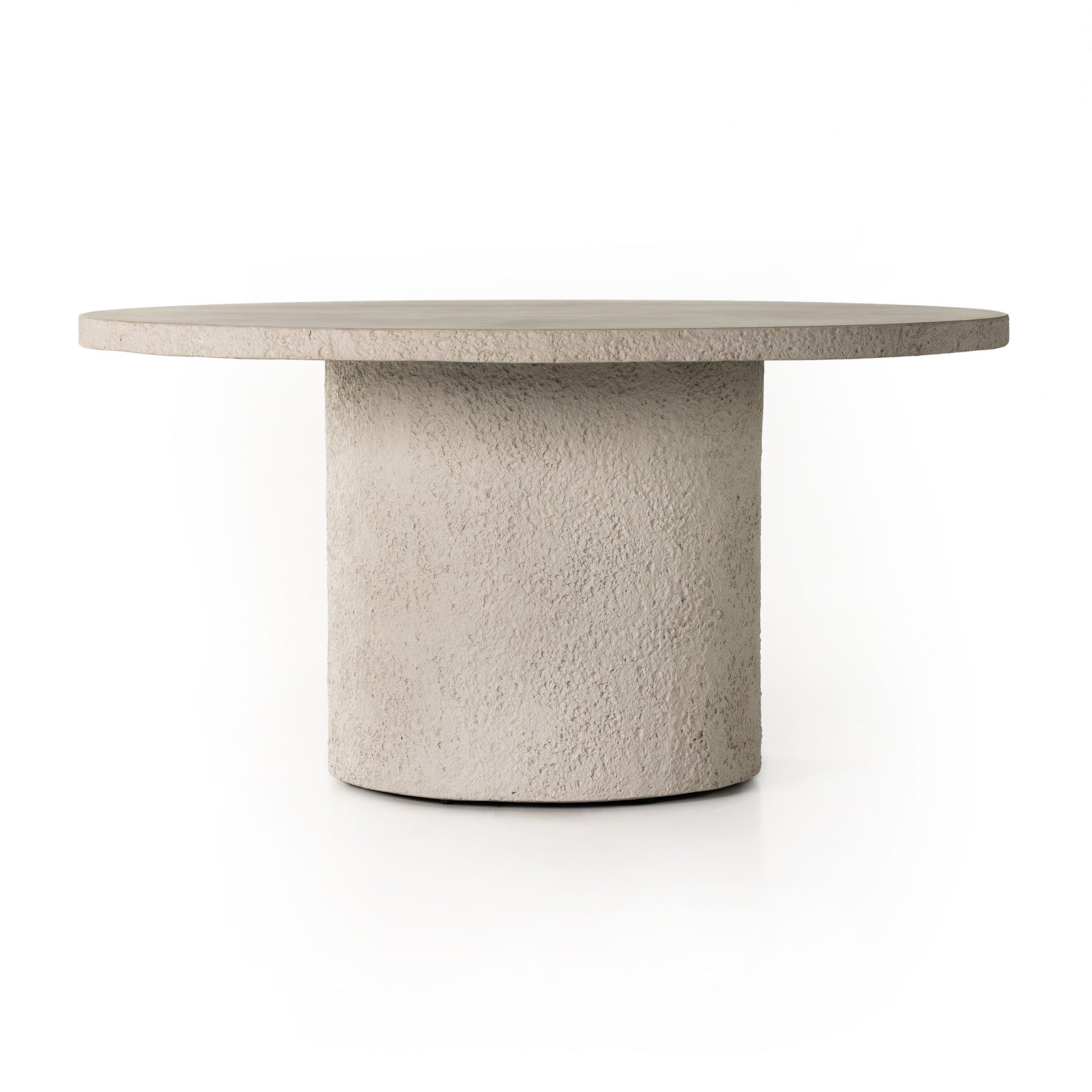 Bring a touch of industrialism to outdoor styling. A monolithic dining table of solid concrete features raw edging for texture and novelty alike, with a smooth, clean surface. Cover or store indoors during inclement weather and when not in use.