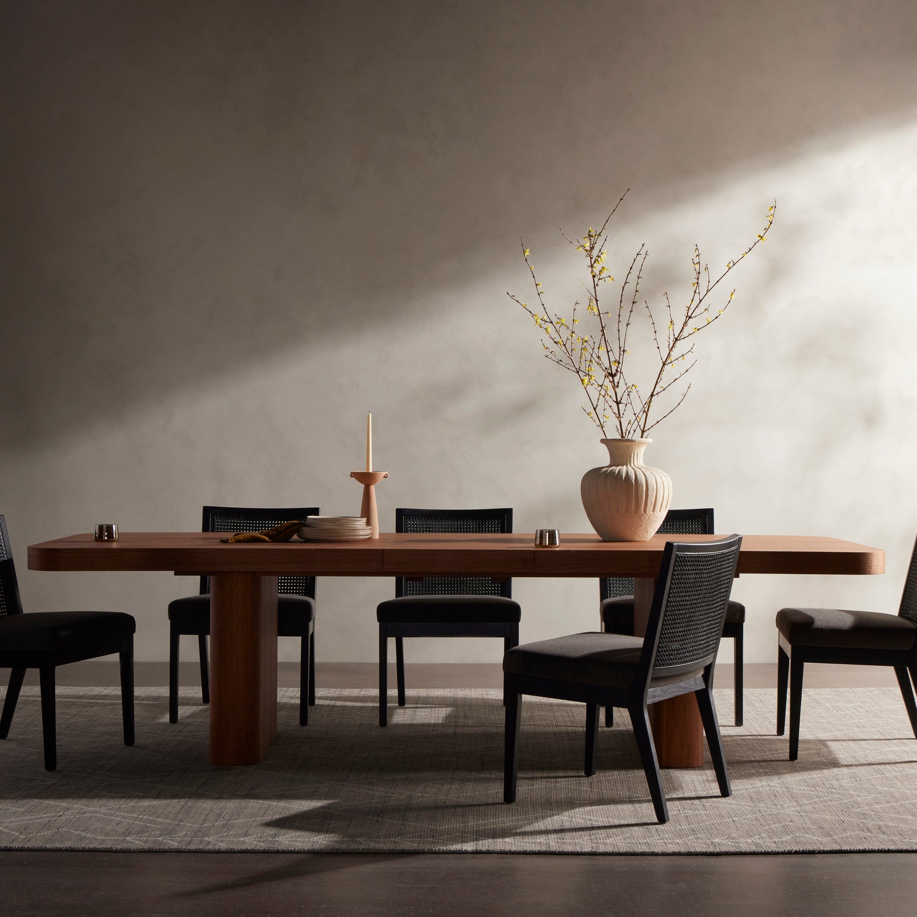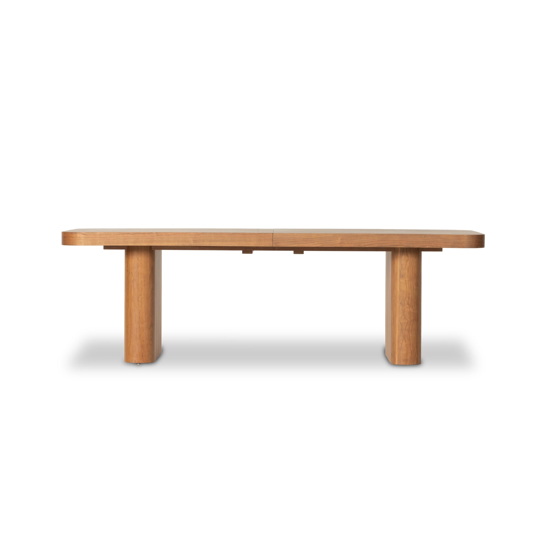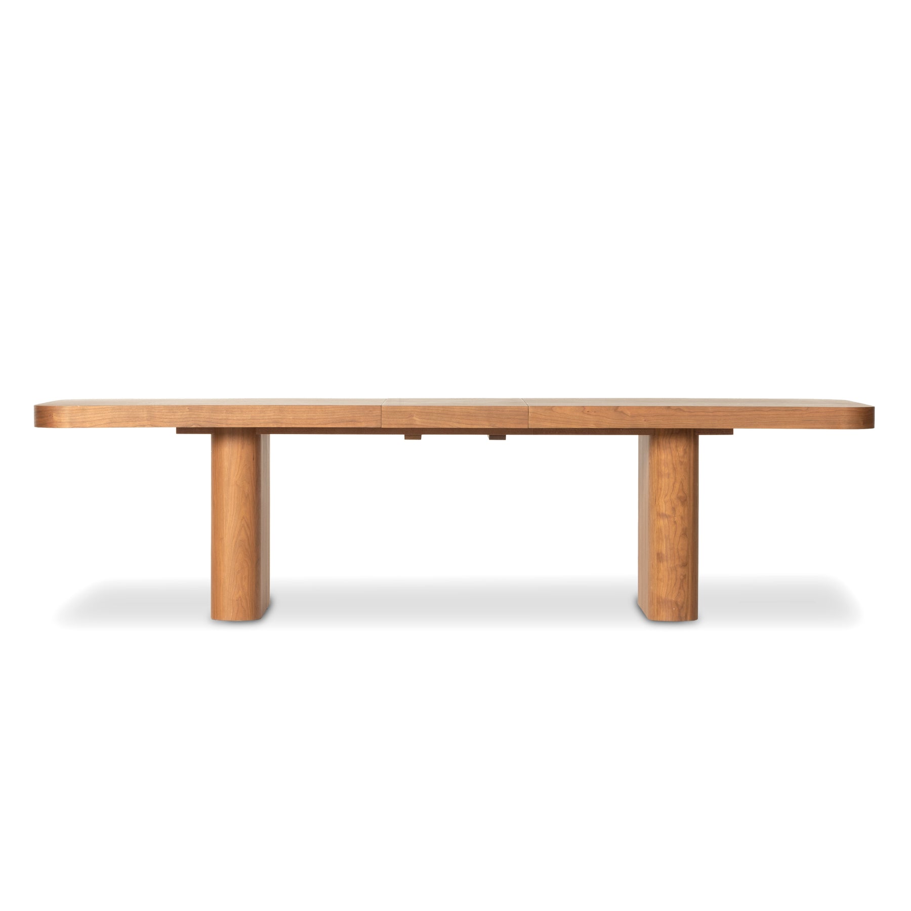 Made from solid and resawn oak with a light, worn finish or smoked black oak with intentional cracking for an aged look, this table includes a self-storing extension that expands seating for extra guests. Four lockable wheels make it easy to extend up to 116".