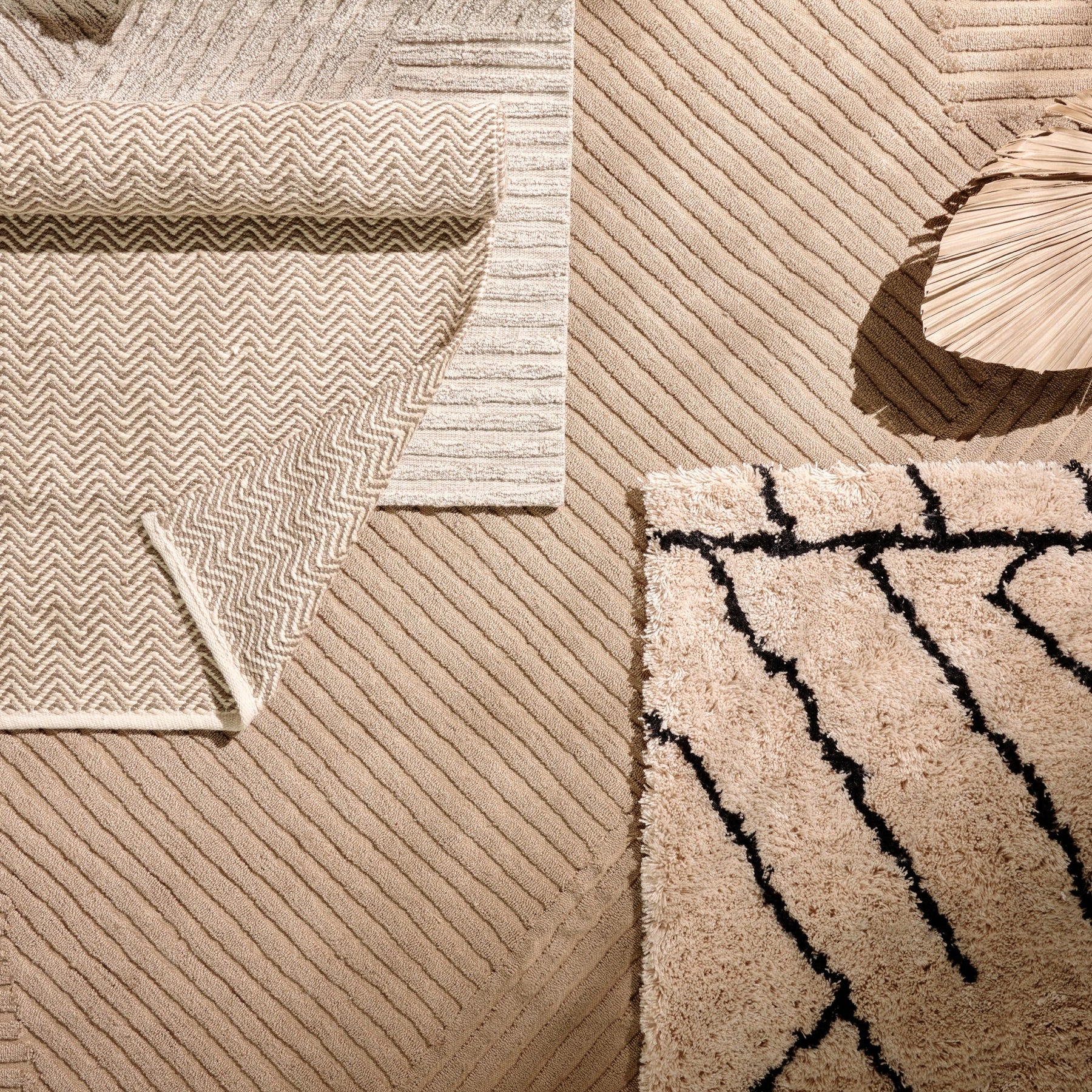 Made entirely from recycled materials, linear patterns plus a high/low pile contrast work a high-texture look to outdoor styling. Store inside during inclement weather and when not in use.