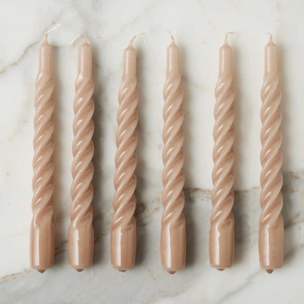 Make a statement at any dinner party with this set of handmade taper candles. Featuring a modern twist design and elegant silhouette, they add a sculptural touch to any table or console. Style them as a bold accent or light them up to enjoy a warm, 5-hour burn. Each candle is crafted by hand, showcasing the artisan's skill in a world of mass production.