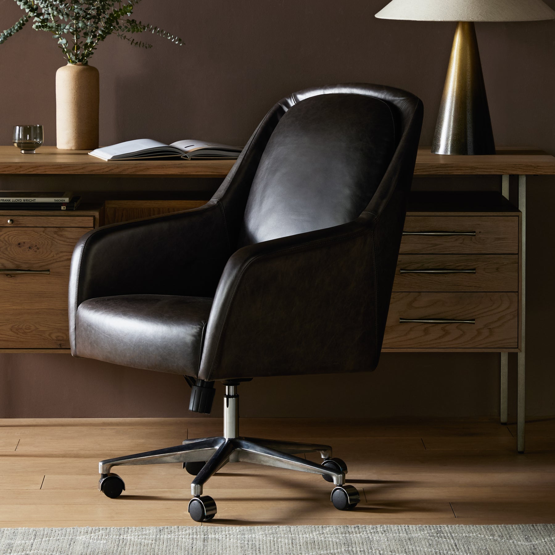A high, curved back and plush high-performance fabric seat cradle you in comfort. Performance fabrics are specially created to withstand spills, stains, high traffic, and wear, ensuring long-term comfort and unmatched durability. Height adjustable with a 360-degree swivel.