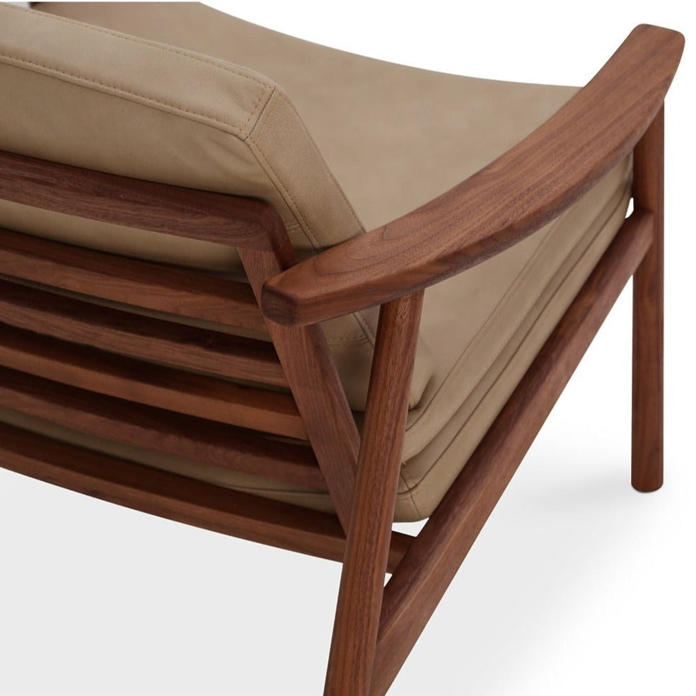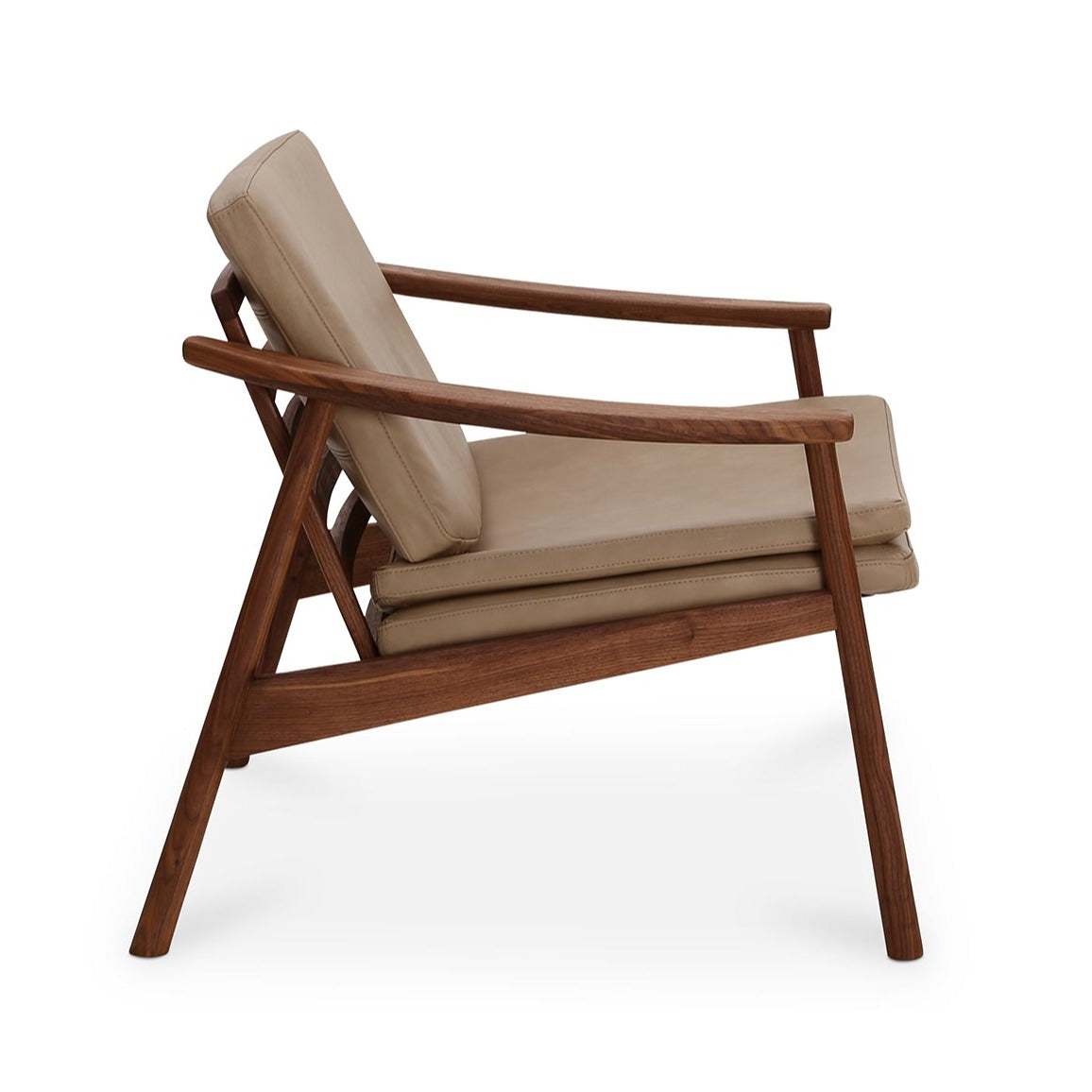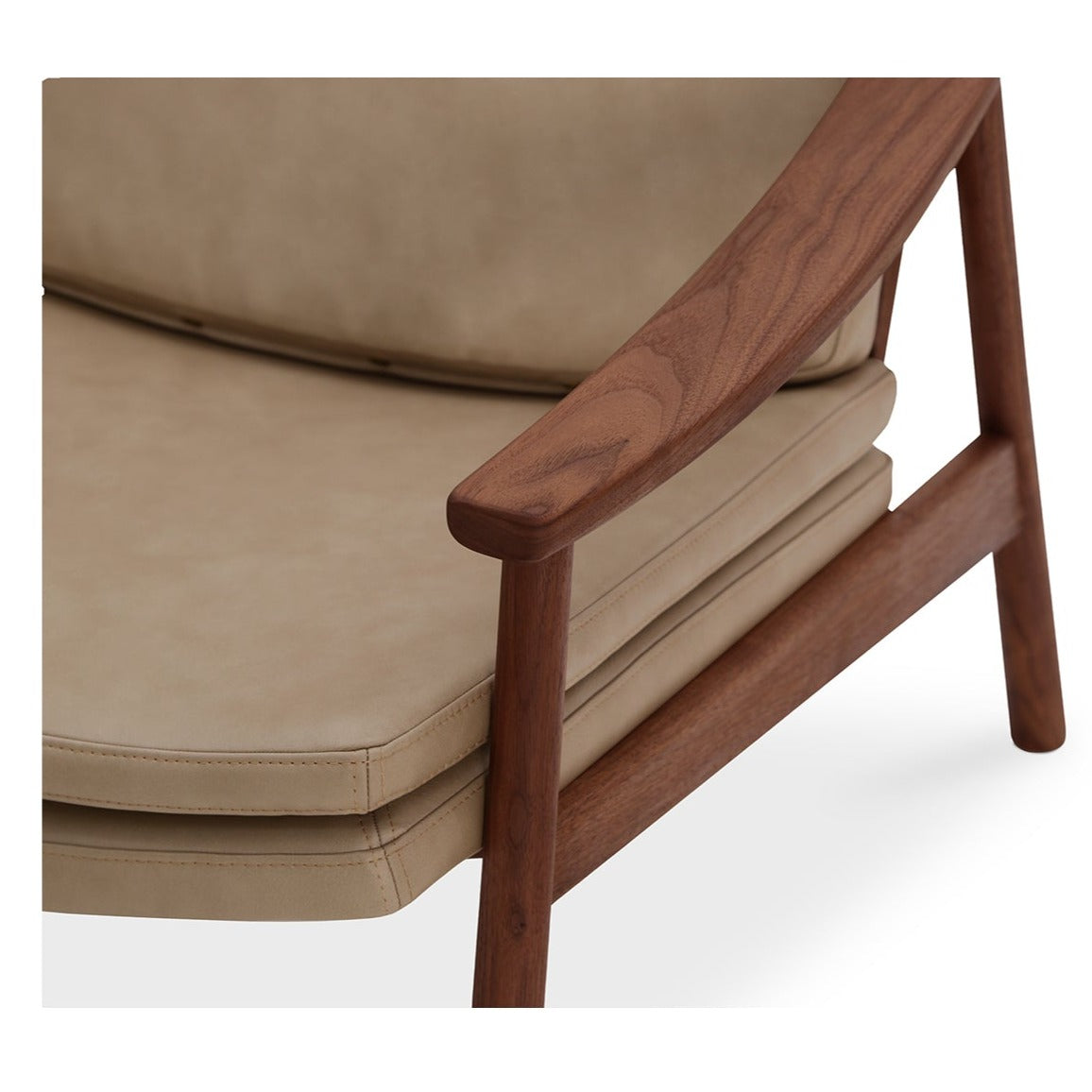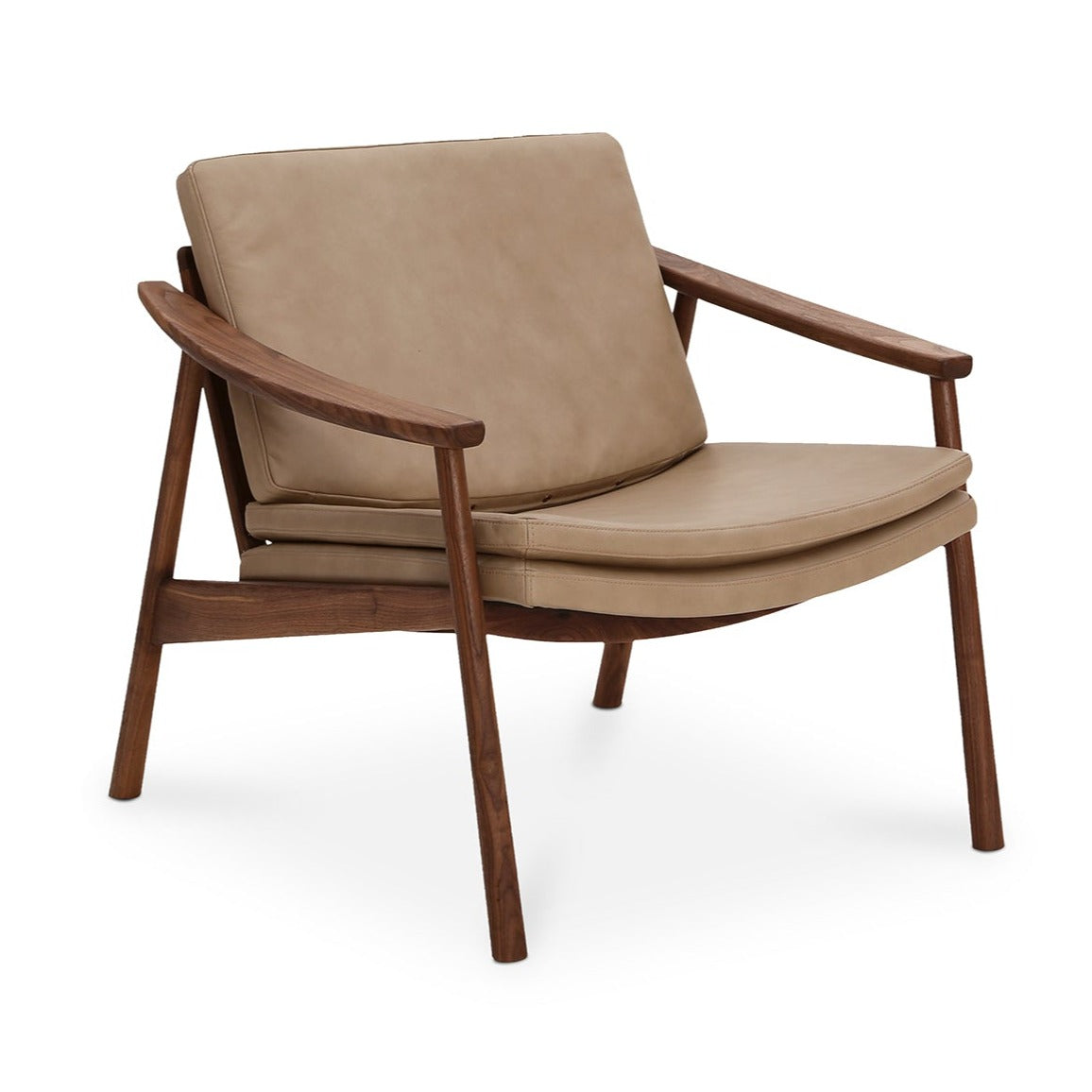 This versatile accent chair is upholstered in a cognac top-grain leather or faux Mongolian shearling with a textural high pile. A contrasting, chunky parawood frame hugs the seat and is wire-brushed for a warm, vintage feel.